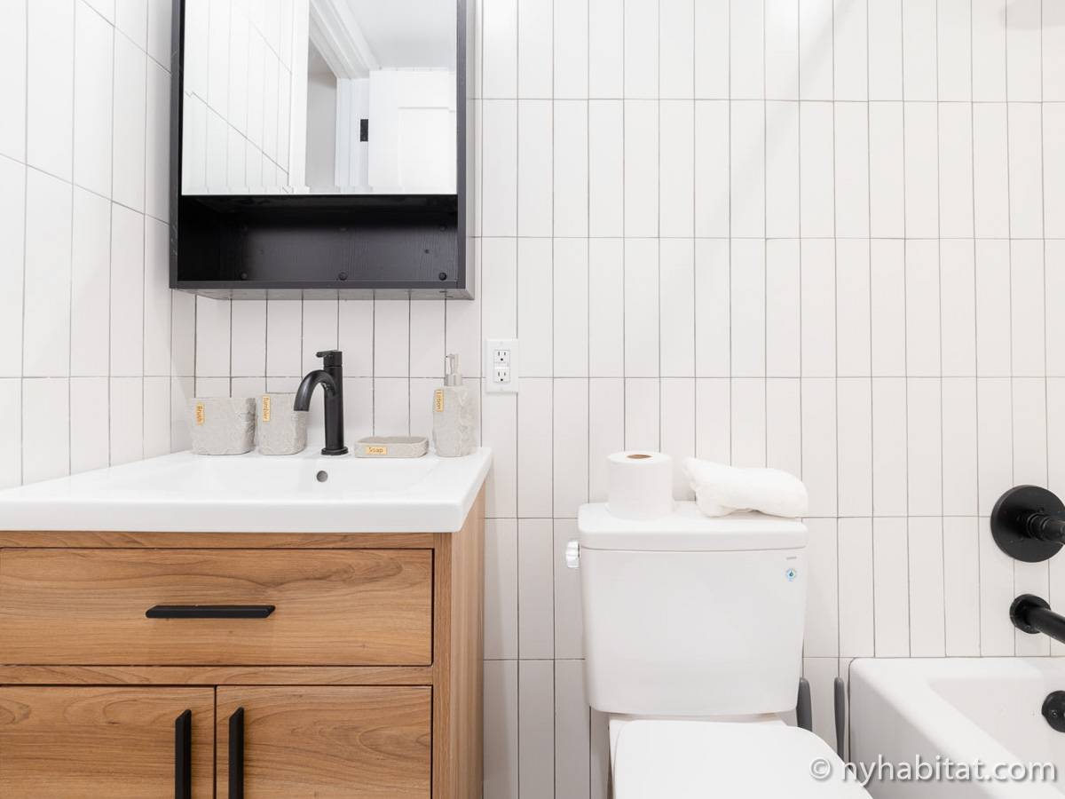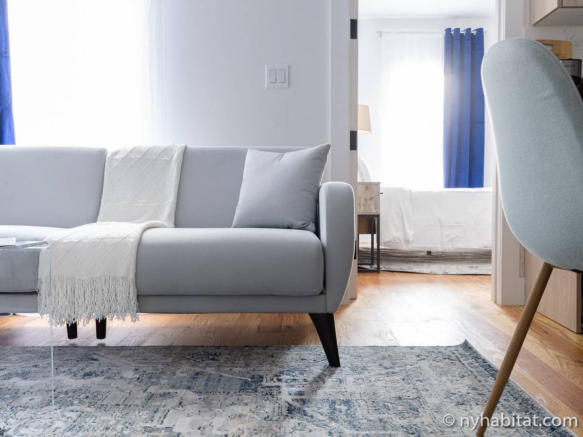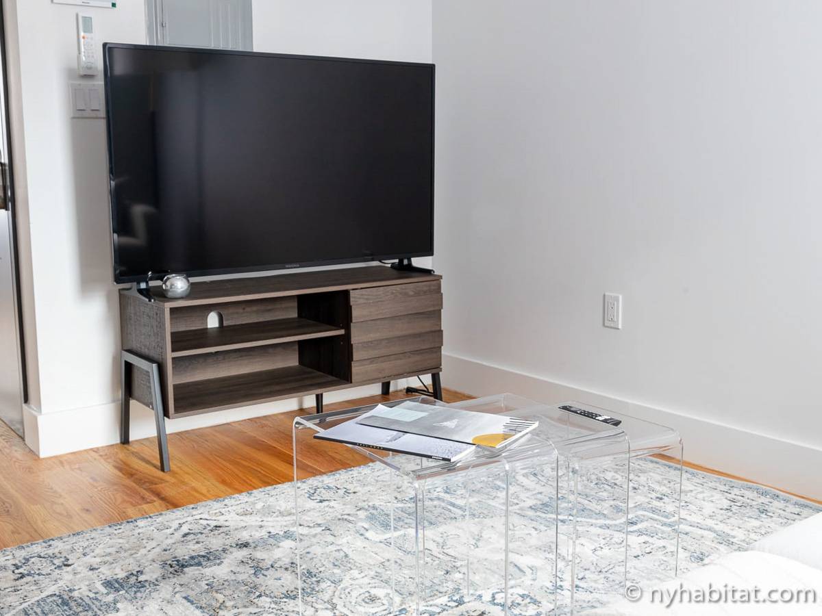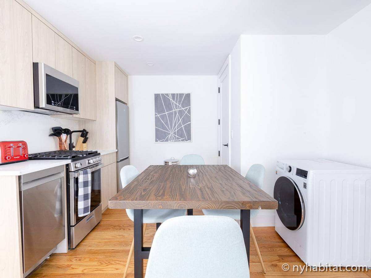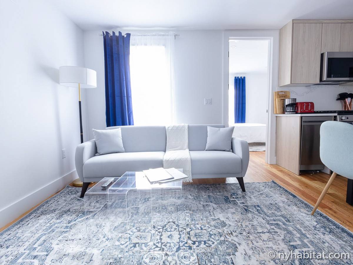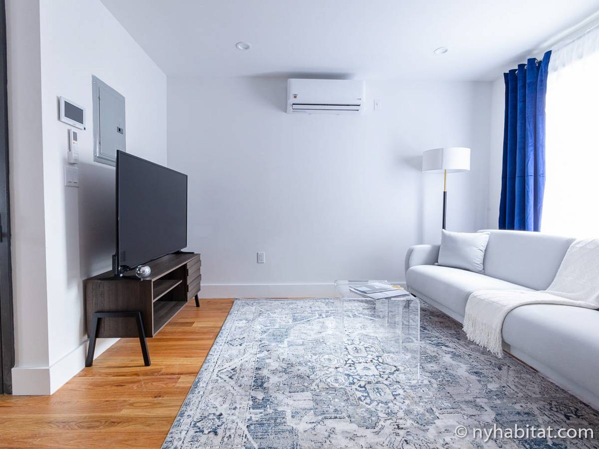 Welcome to the hip and trendsetting Brooklyn neighborhood of Williamsburg. Here lies this 2-bedroom, 1-bathroom furnished apartment. This 750-square-foot (70 m2) furnished rental can be found near the crossing of Graham Avenue and Devoe Street in a no-elevator building. The apartment features hardwood floors and has both a washing machine and dryer in the unit.