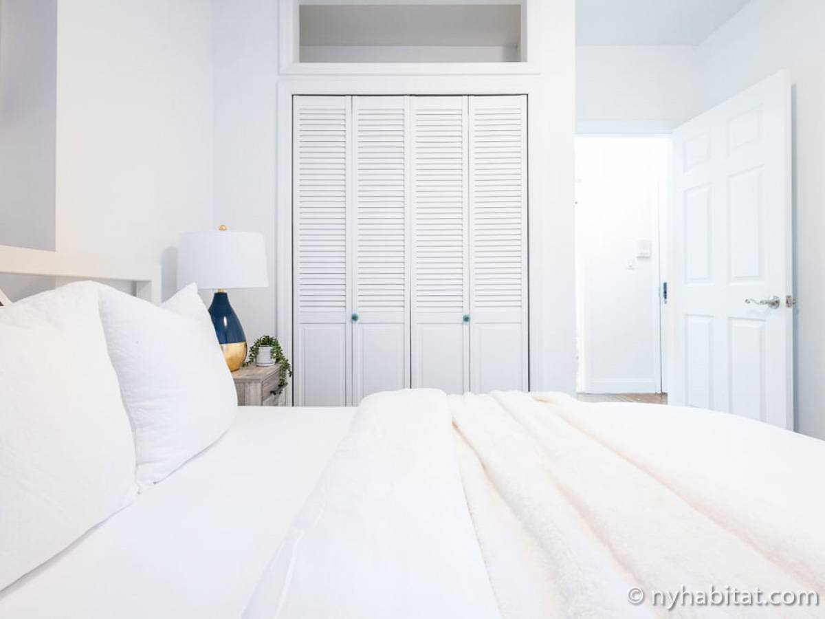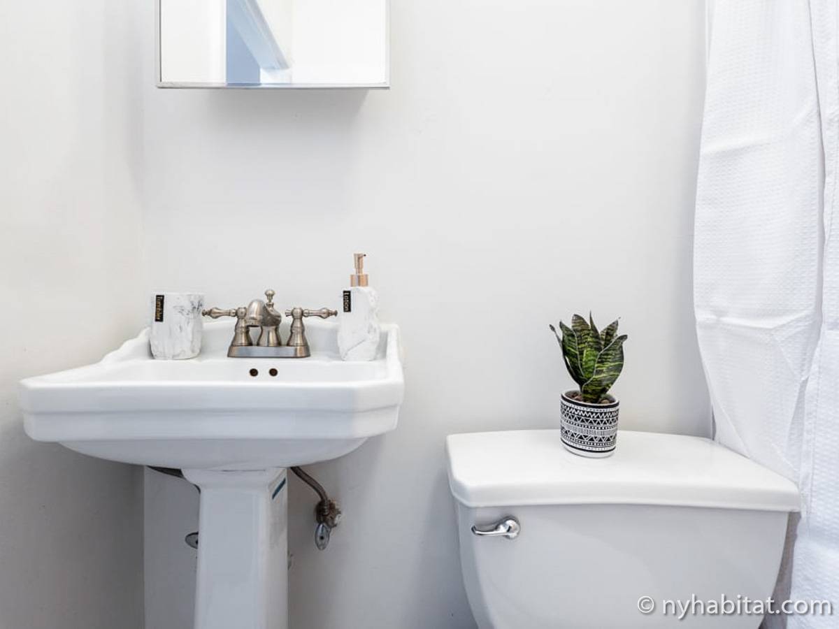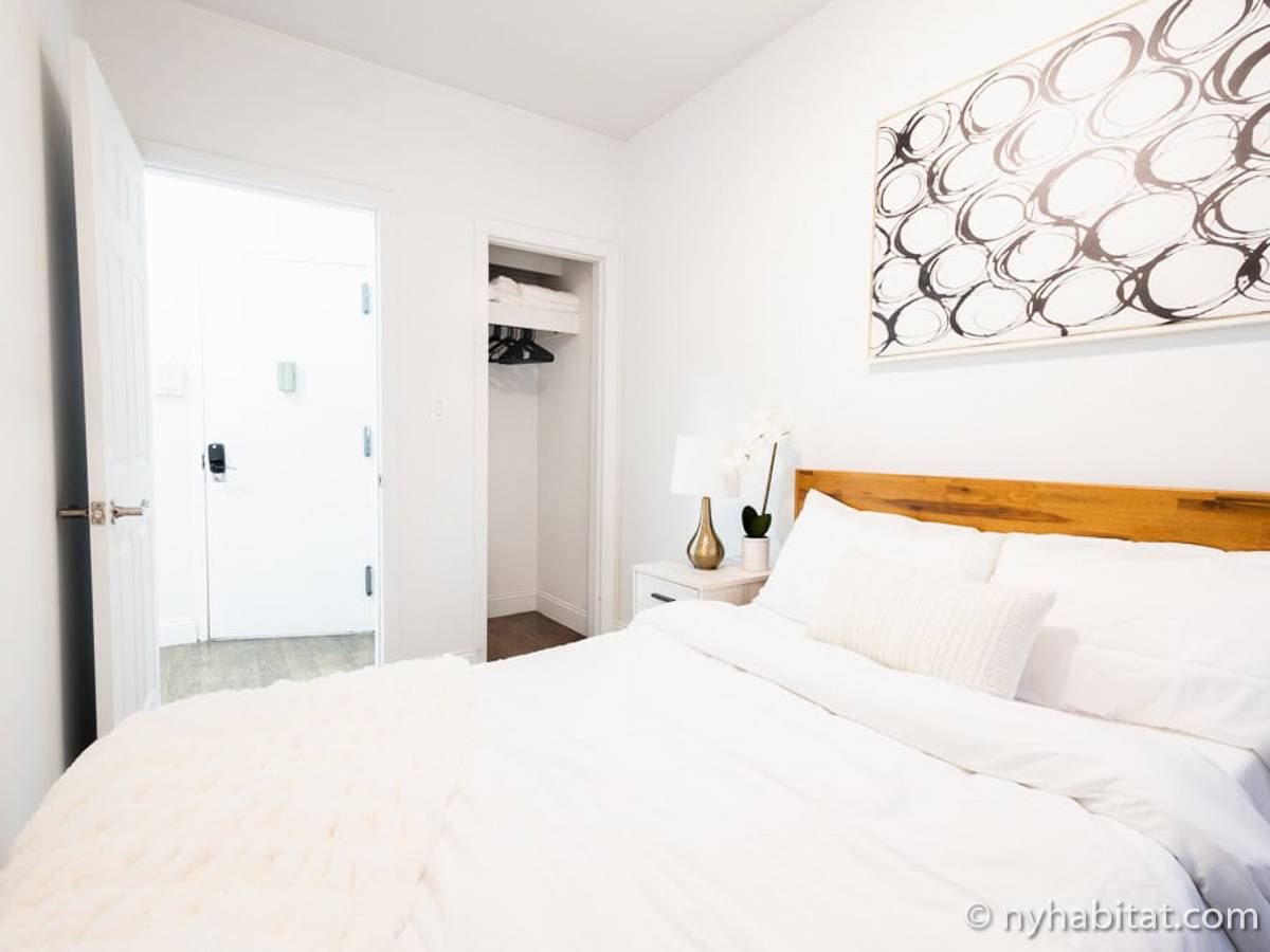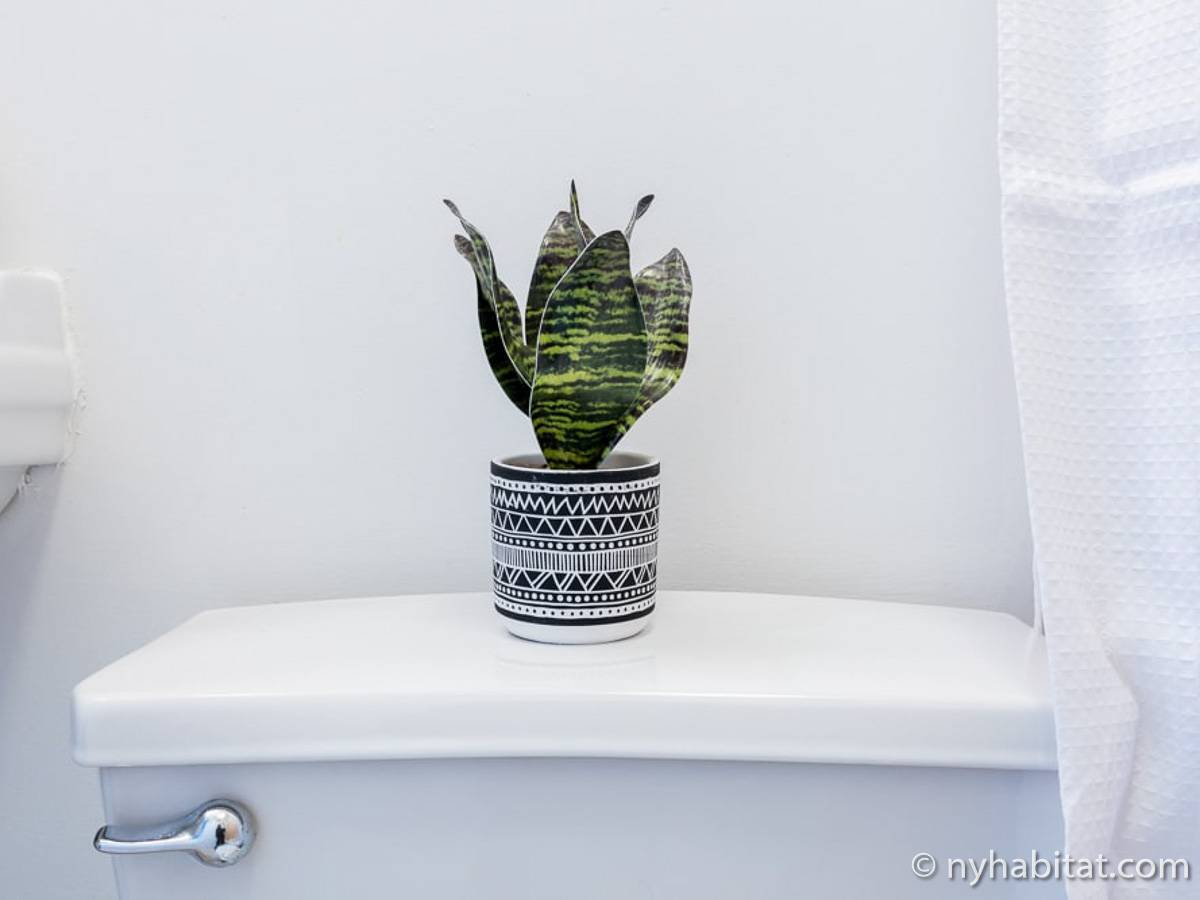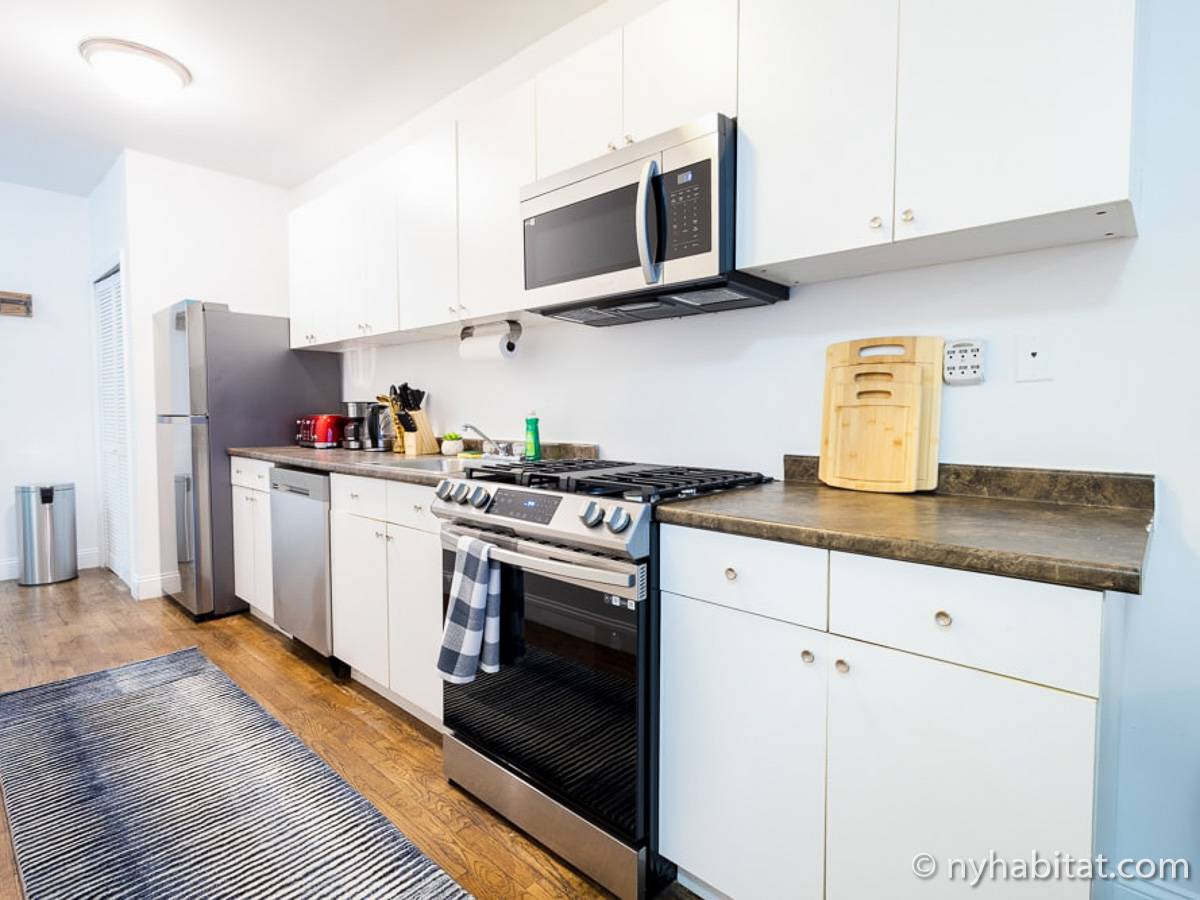This Upper East Side furnished rental near the corner of 2nd Avenue and East 75th Street features a living room, kitchen, and in-unit laundry. In the living room, you can find a television, sofa, and dining area. Hardwood flooring here, and two windows, give the space a chic aesthetic. The open kitchen provides a stainless-steel refrigerator, freezer, oven, microwave, dishwasher, and coffee machine, as well as a toaster. All three bedrooms include a double-size bed, closet space, and air conditioning. The bathrooms have a shower with a built-in bathtub, and a pedestal sink.