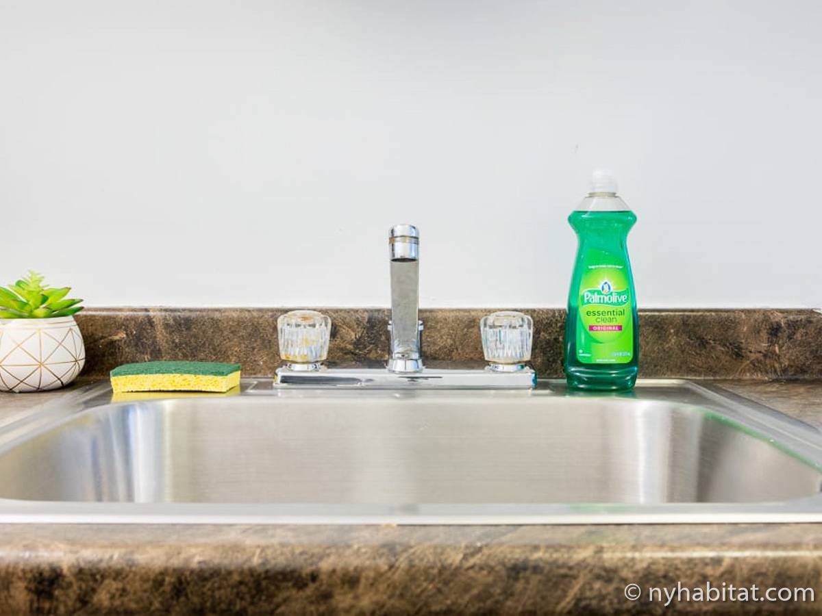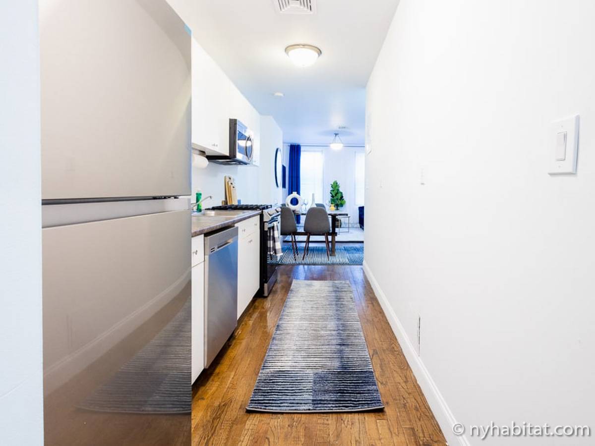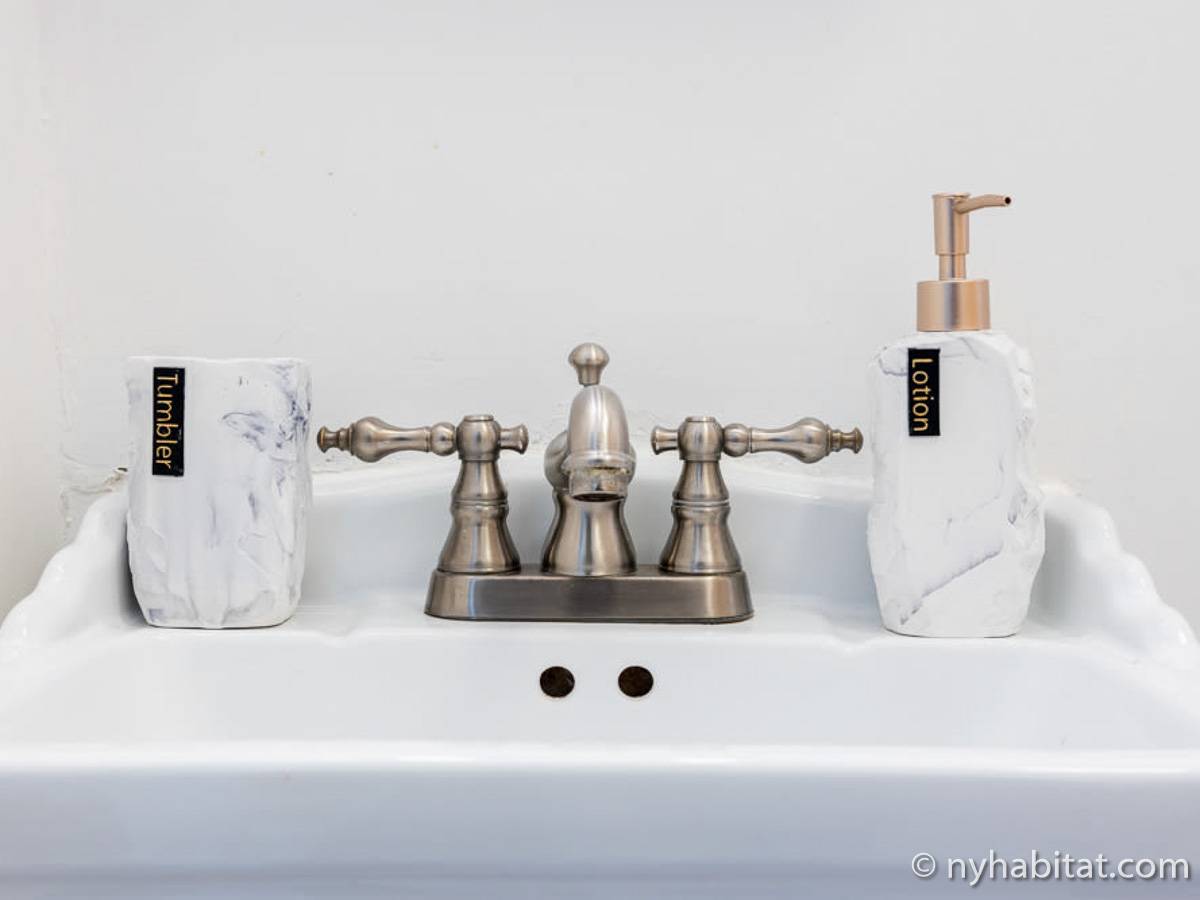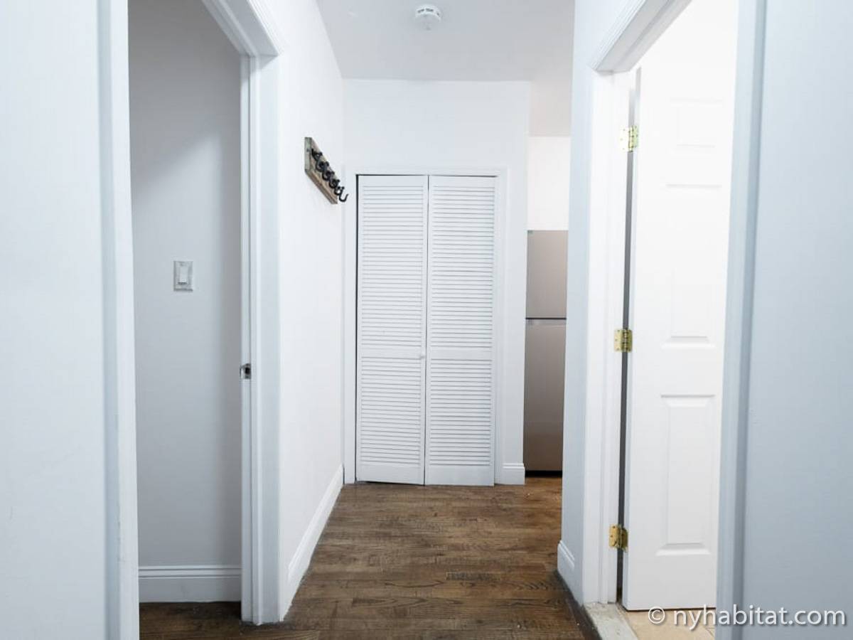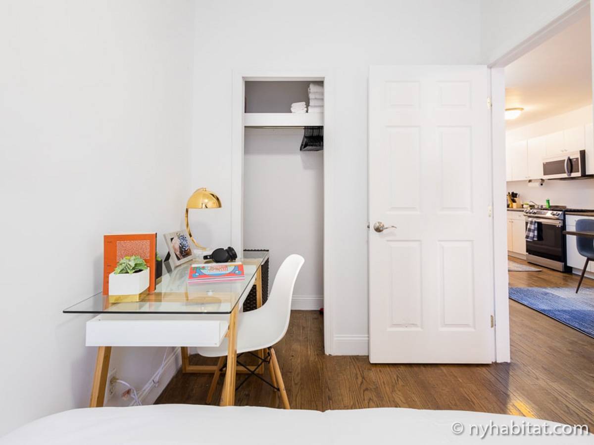 This Upper East Side furnished rental near the corner of 2nd Avenue and East 75th Street features a living room, kitchen, and in-unit laundry. In the living room, you can find a television, sofa, and dining area. Hardwood flooring here, and two windows, give the space a chic aesthetic. The open kitchen provides a stainless-steel refrigerator, freezer, oven, microwave, dishwasher, and coffee machine, as well as a toaster. All three bedrooms include a double-size bed, closet space, and air conditioning. The bathrooms have a shower with a built-in bathtub, and a pedestal sink.