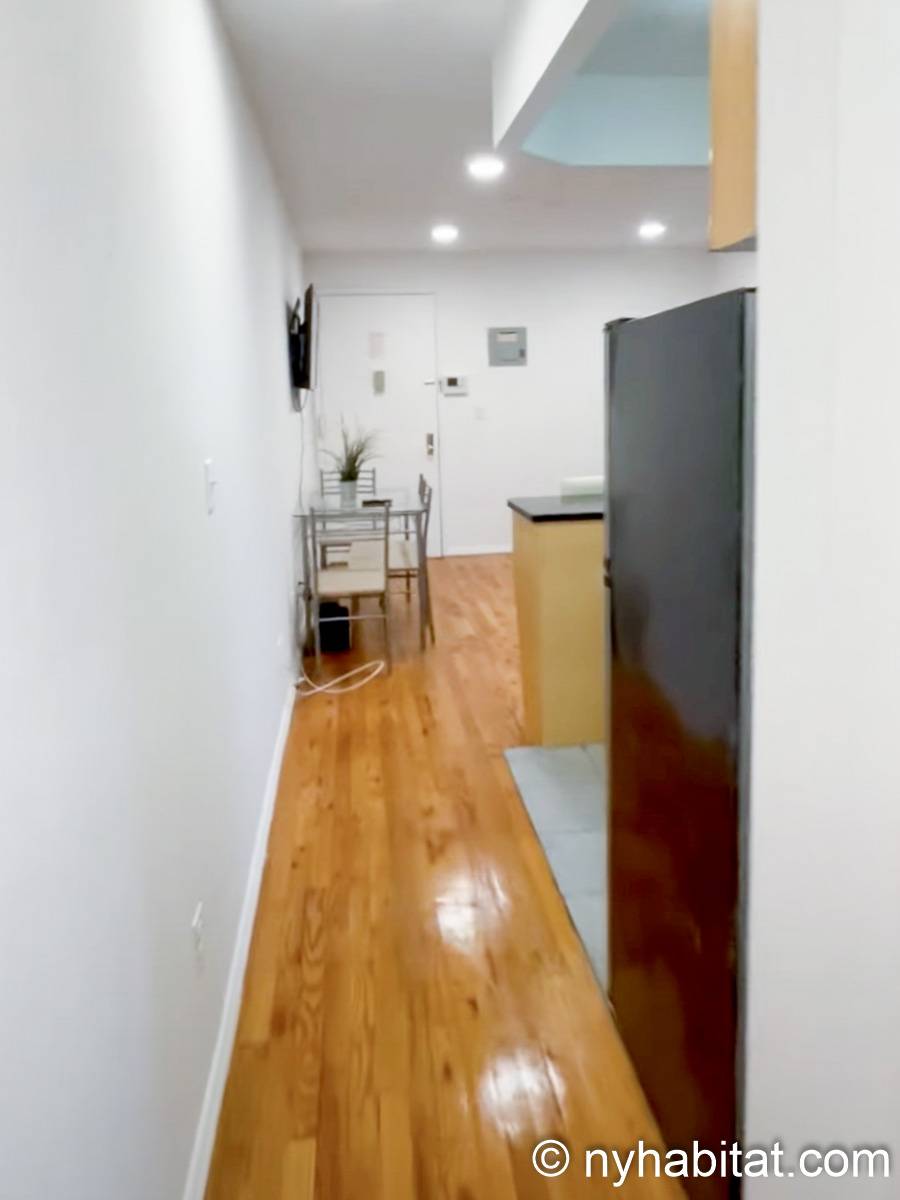 On the 5th floor (equivalent to the 4th floor in Europe) of a 6-story building, this furnished rental is located near the crossing of West 51st Street and 9th Avenue. The apartment building features an elevator, a laundry room, and a security system.
