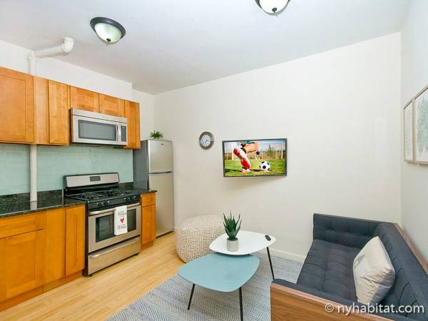 Welcome to this New York two-bedroom, one-bathroom furnished apartment in Manhattan’s East Harlem.