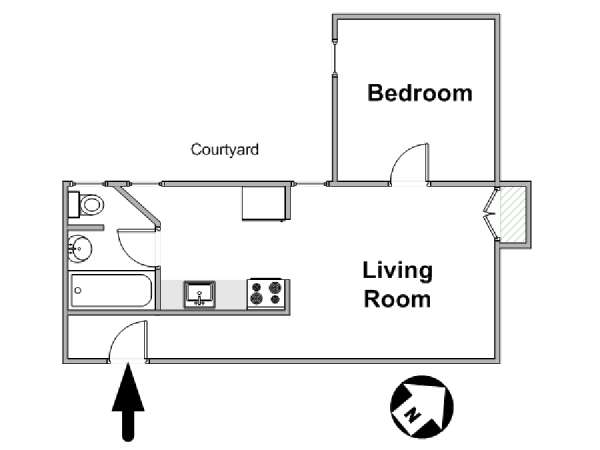 Discover the endless possibilities in the East Village of Manhattan, New York in this one bedroom furnished apartment. Near the cross streets of 13th Street and First Avenue, the apartment is found after a short flight of stairs on the 2nd floor (1st floor in Europe ) of a 6-story of a 20th century walk-up building.
