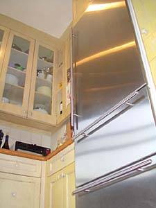 The foyer leading to and adjoining the living room has an elegant dining table that seats four in its closed position, with two easily added leaves that transform it to a size that can comfortably seat ten. The superb kitchen is a cook's dream, with a double width stainless steel sink, a stainless steel SubZero refrigerator with two freezer compartments including an icemaker, a full size dishwasher, microwave, stove and oven, and floor-to-ceiling cabinets containing every and anything any chef or host might need to prepare meals ranging from the basic to the most complex. The kitchen also features a sliding French door that can separate it from the rest of the apartment, and completely eliminates any dishwasher noise that might otherwise be heard after meals.