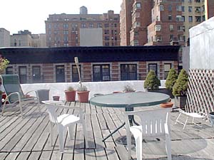 One flight up from the apartment, and for the exclusive use of the occupants of the apartment, is a glorious roof deck with a magnificent view overlooking the Hudson River, New Jersey and the Manhattan skyline-truly a unique rooftop paradise.
