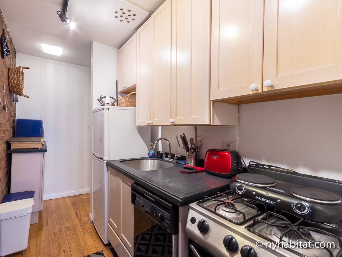 The apartment was as depicted in the New York Habitat description, in excellent condition-very clean, no bugs or other issues, and relatively quiet (other than the street noise which is pretty unavoidable). My son had an excellent stay there. He did not have much interaction with the owners who live in the building, but in his case that worked out fine. Overall, a very good location and pleasant apartment. |