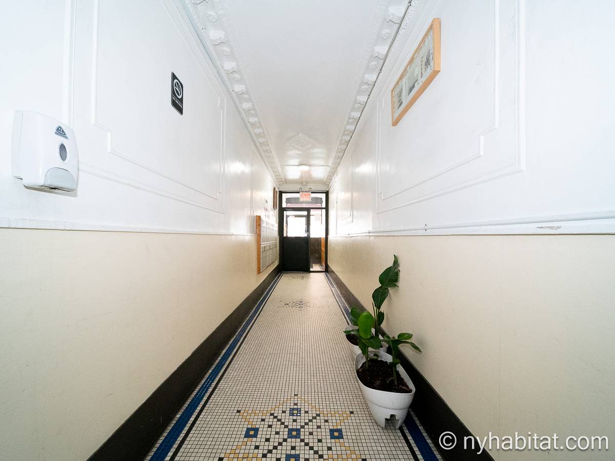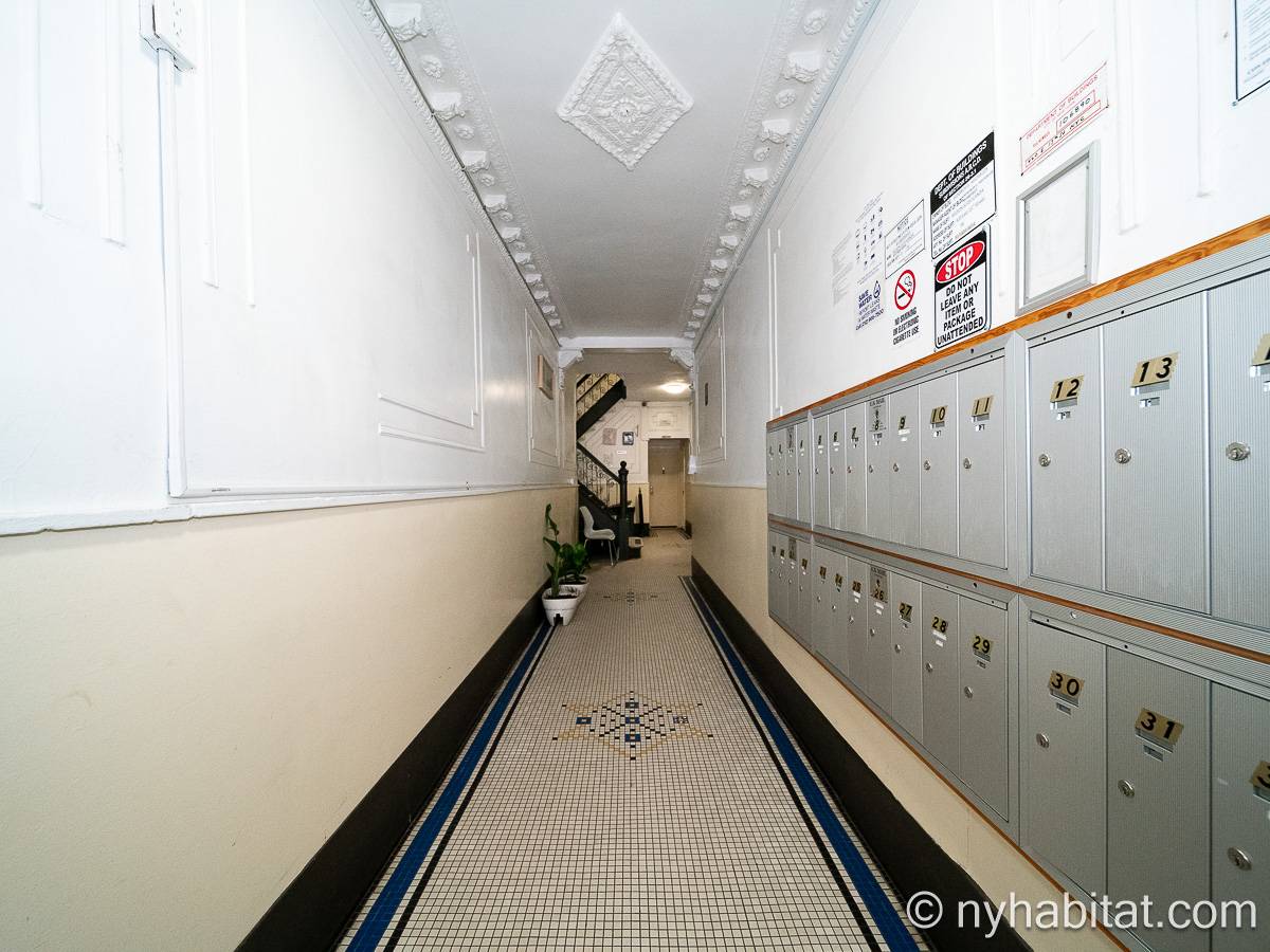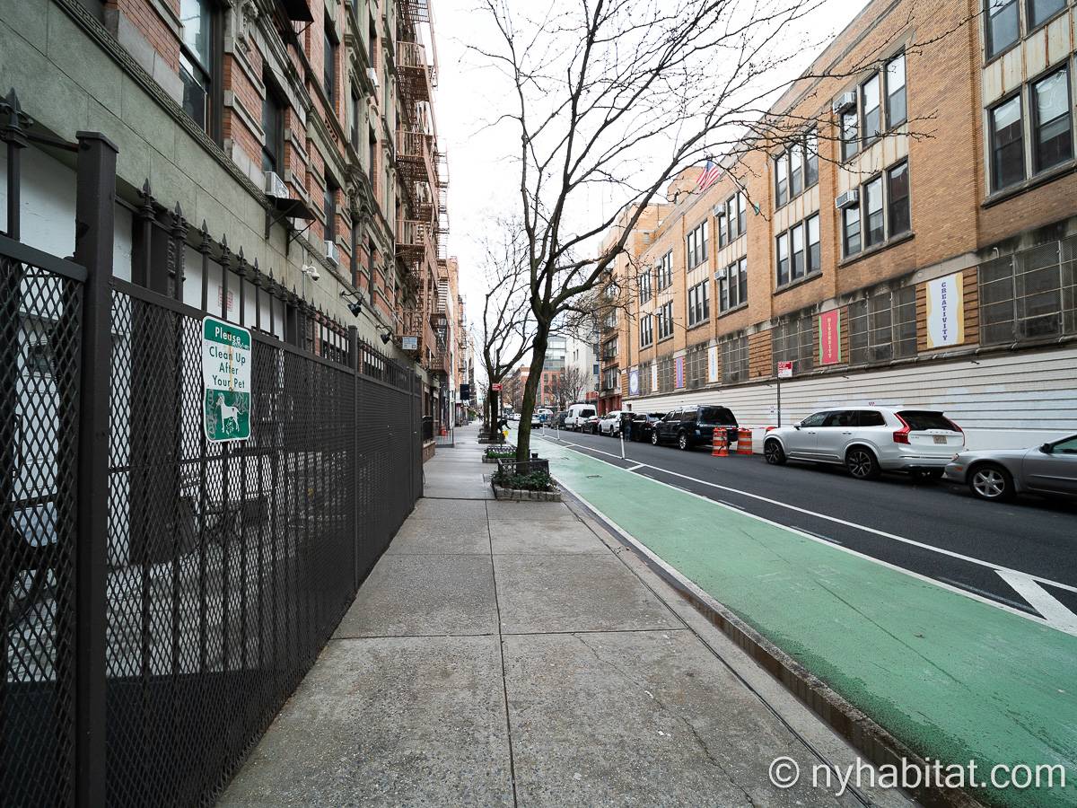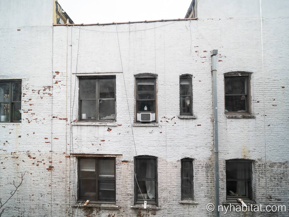 This one bedroom apartment is ideally located in the East Village in Lower Manhattan, New York, on 13th Street and 1st Avenue. The apartment is on the sixth floor (5th for Europeans) of a low-rise, prewar walk-up building. The building features a front door security system with double doors and a locked security gate.