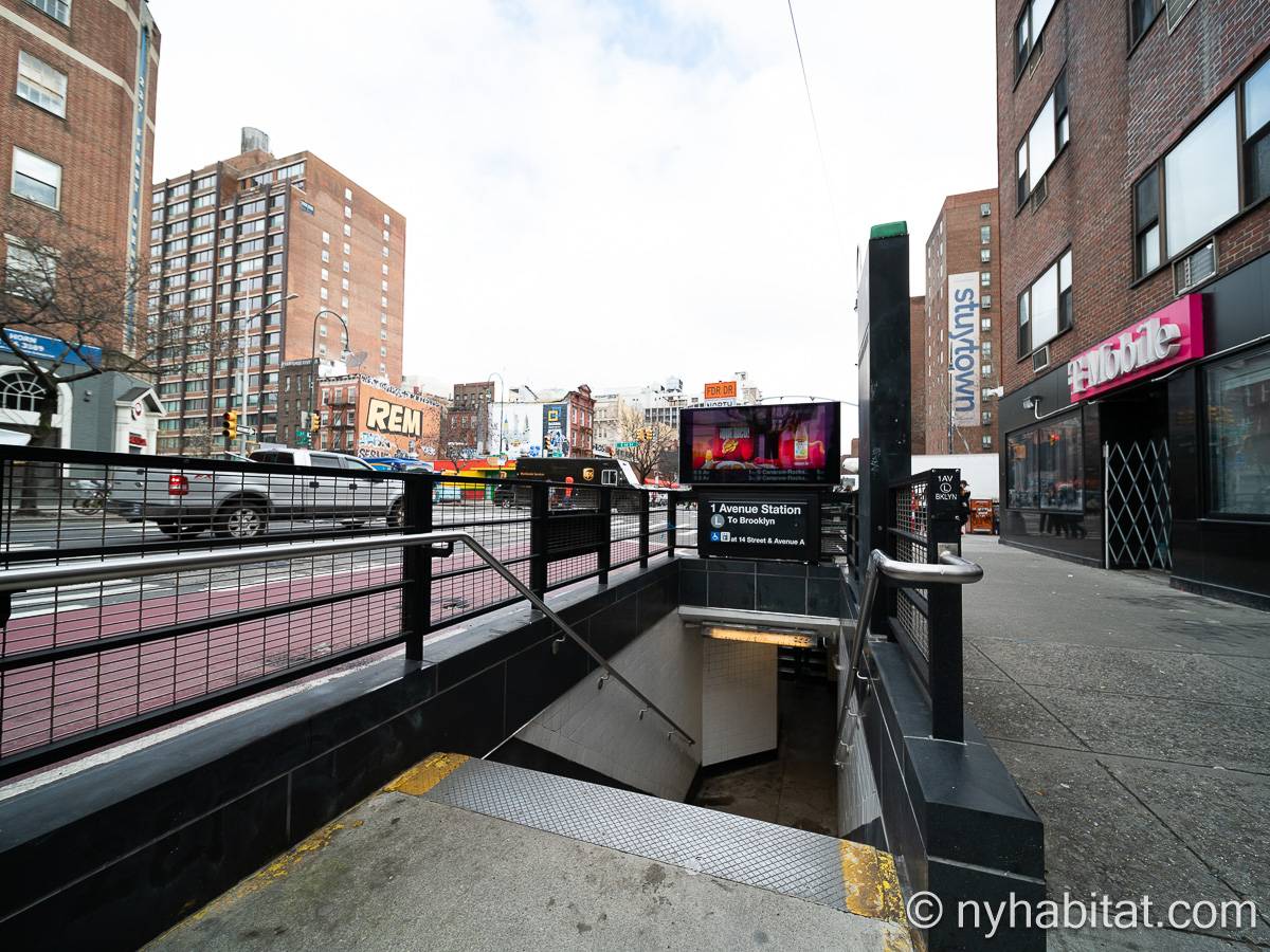 New York’s East Village is a prime location with lots to offer. This neighborhood has numerous and diverse dining options, with restaurants specializing in cuisines from all around the globe. Try the ramen at the renowned Momofuku Noodle Bar, right around the corner, or Flea Market Café (4 blocks), a French bistro acclaimed for its delicious Sunday brunch. If you want to enjoy the greenery and relax, visit Tompkins Square Park (just across from the Flea Market Café), which has a dog run and playground, and is site of several festivals throughout the year. On the same street as the apartment you will find a grocery store and Laundromat, making it quick and simple to get your chores done, leaving you more time to take in New York! You will also be able to conveniently access public transportation, as the closest subway station, 1 Avenue / 14 Street (L train) is within a block. Hop on a train and check out the rest of Manhattan and even the other NYC boroughs—Brooklyn’s trendy Williamsburg neighborhood is just a stop away!