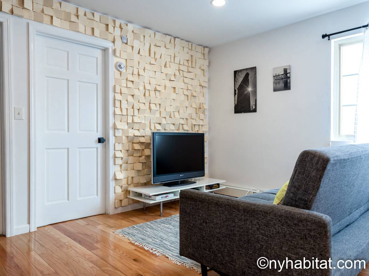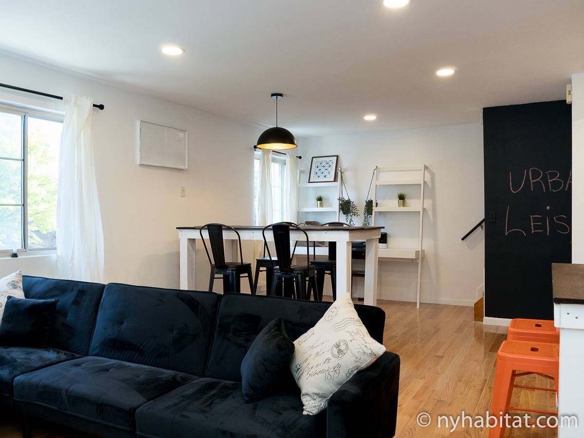 These rooms for rent are located in a shared brownstone in Clinton Hill, a neighborhood in Brooklyn, New York. The available rooms are on the ground and parlour floors of a 4-story walk-up brownstone building. There is an intercom system at the door for screening visitors.