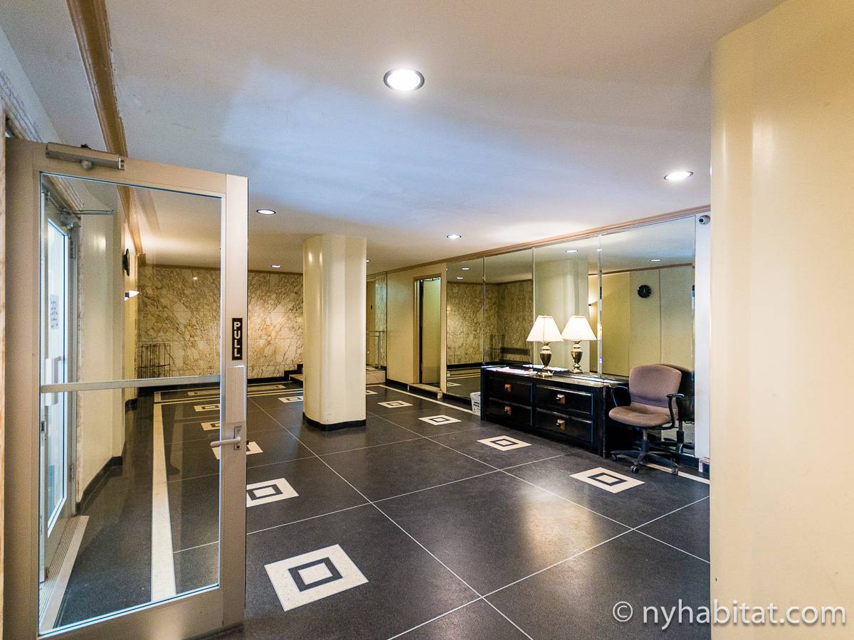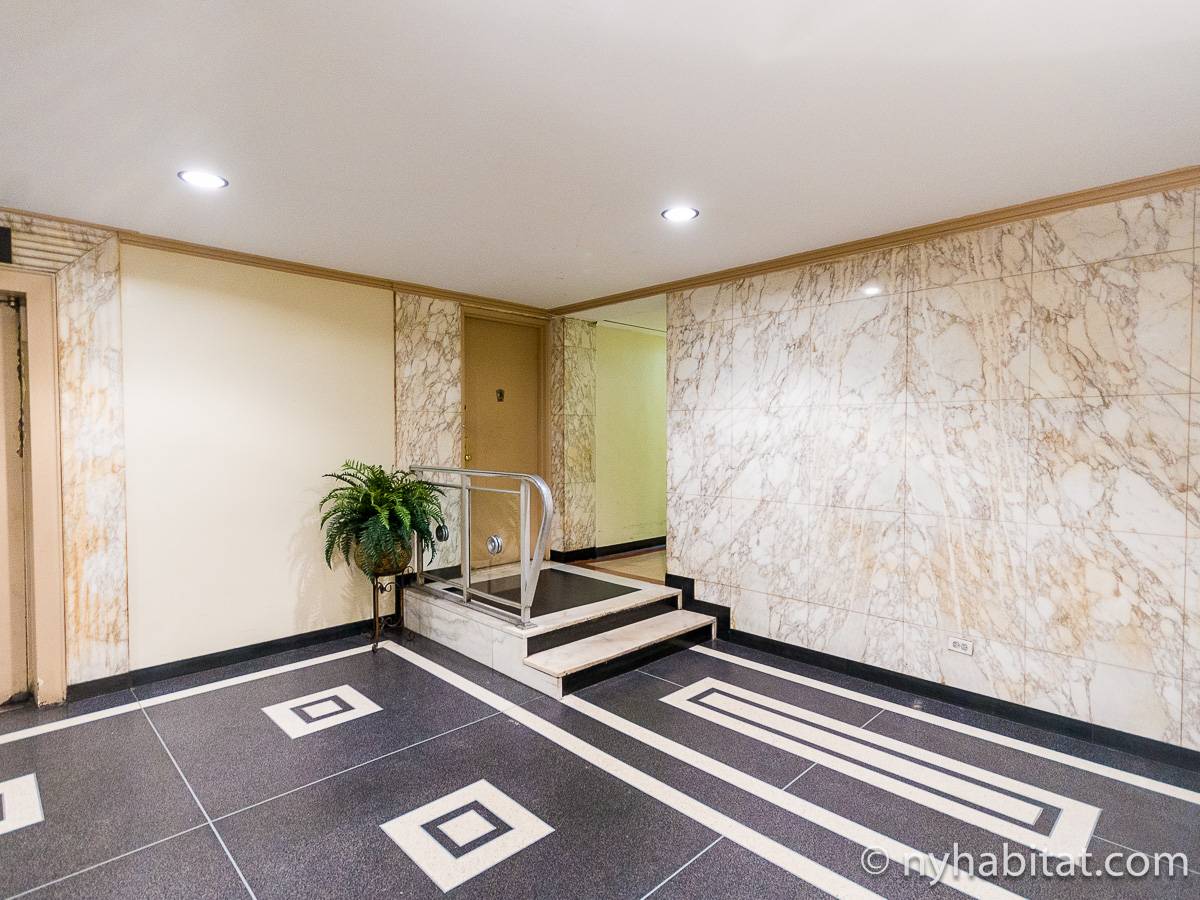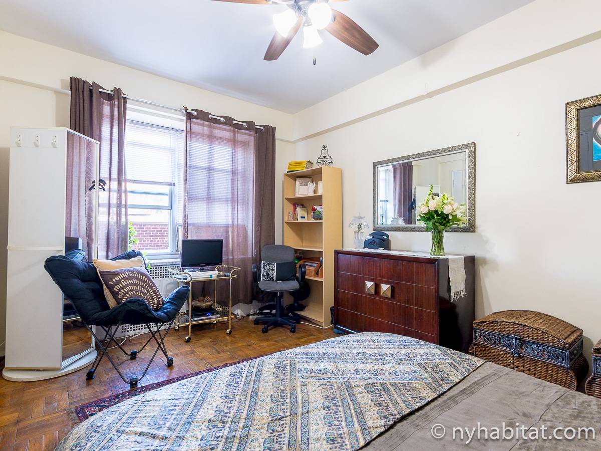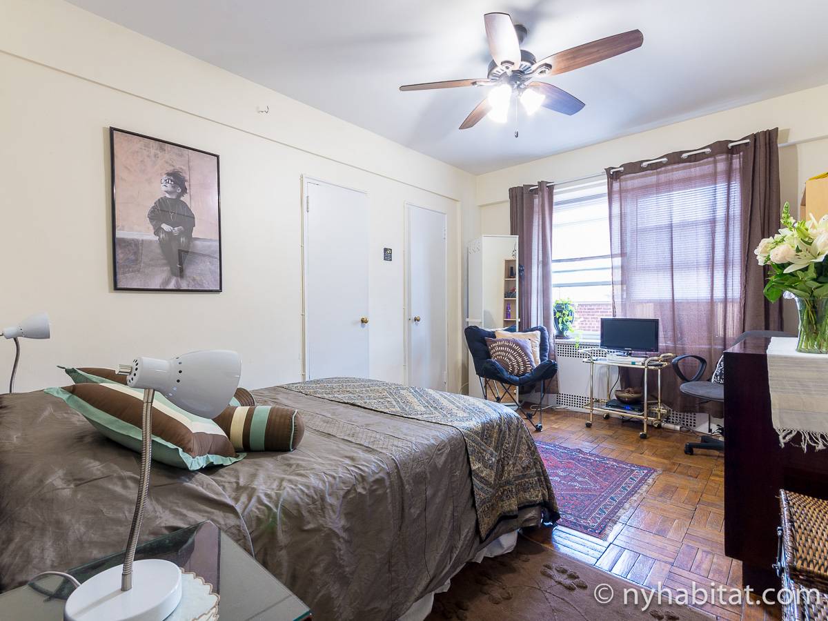 This fully furnished bedroom for rent is located in the Rego Park neighborhood of Queens, New York. The apartment is on the ground floor of an 8-story (equivalent to the European 8-story) building with an elevator. There is a doorman on duty 7 days a week from 8 am to midnight. Additionally, laundry is available within the building.