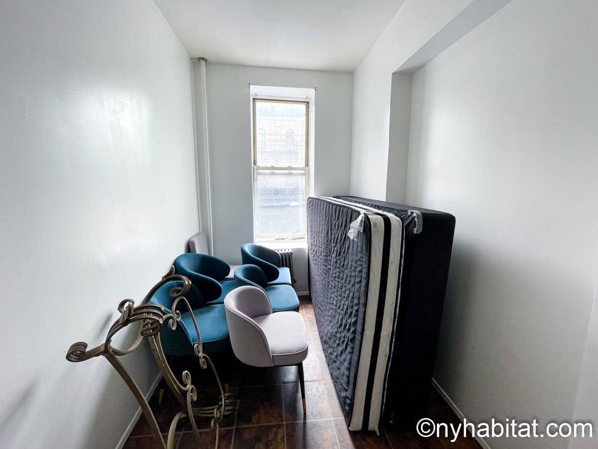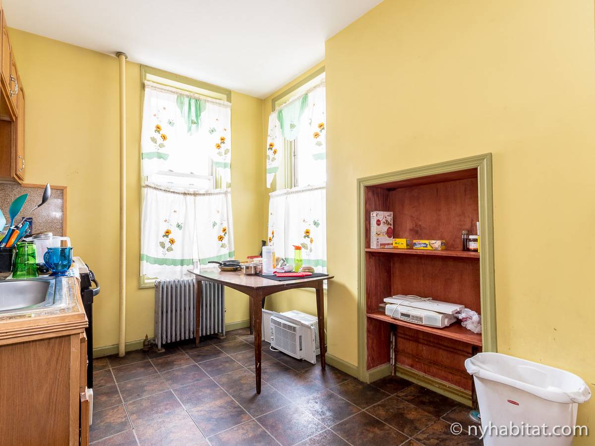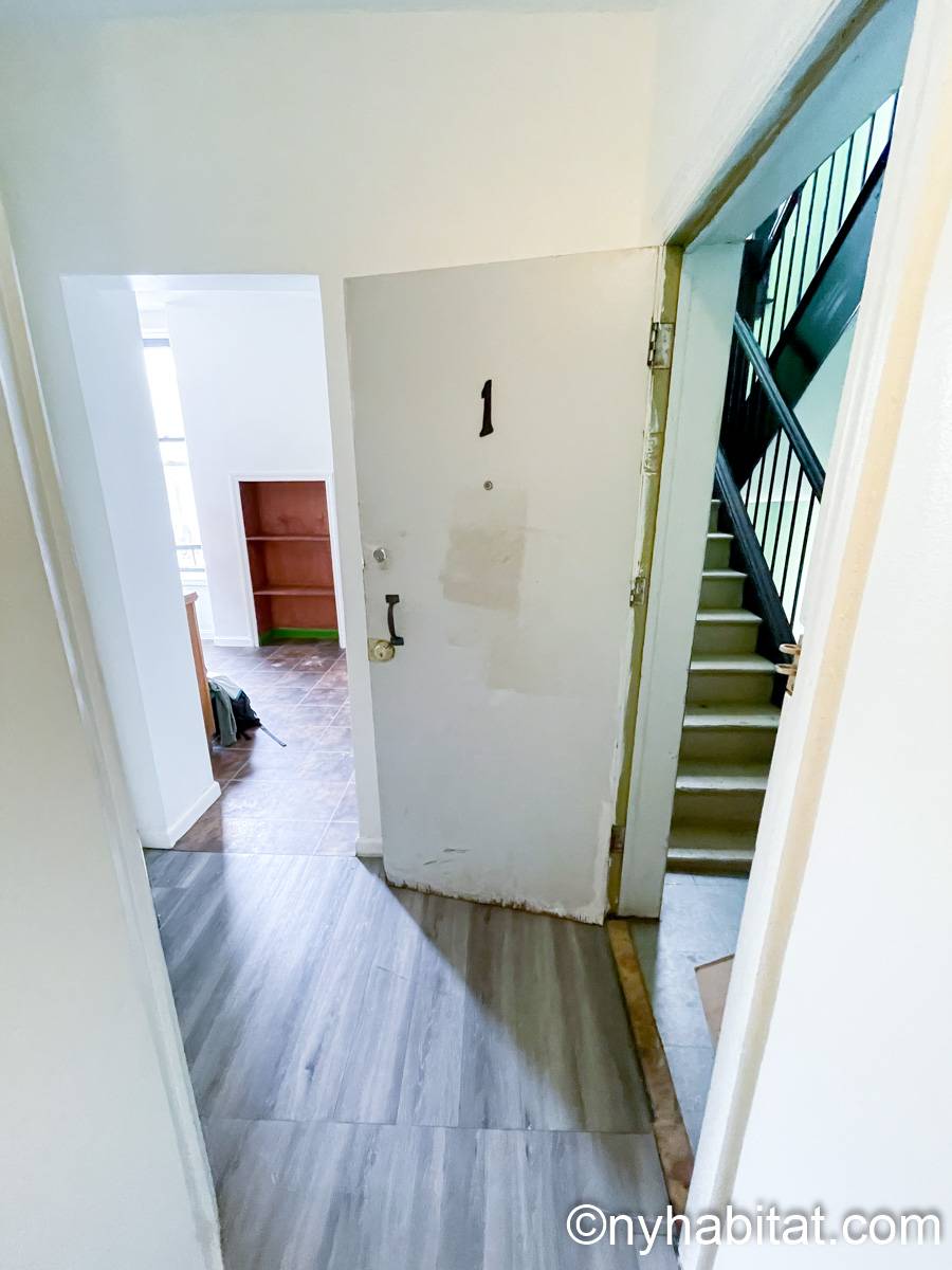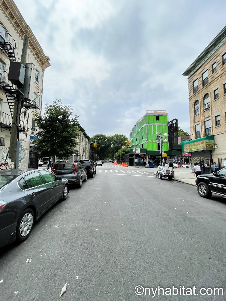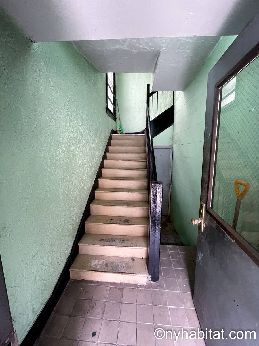 These rooms for rent are found in a shared 4 bedroom / 1.5 bathroom apartment in Bedford-Stuyvesant, on Reid Avenue and Putnam Avenue in Brooklyn. The rooms are on the 2nd floor (considered the 1st floor by Europeans) of a 4-story walk-up building located on a street corner—making it very bright, as the sunlight shines through from both the North and the East. You will conveniently find a commercial laundromat on the ground level of this building.