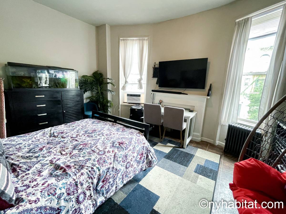 These rooms for rent are well situated in the Bedford-Stuyvesant-Crown Heights area in central Brooklyn, New York. You will enjoy taking a stroll through the streets in this neighborhood, which are lined with many historic townhouses and brownstones, and have a lot of character. If you wish to stay in the area, there is a combination of acclaimed local eateries. You can grab a burger at Crave (5 blocks), which only uses fresh and local ingredients, or if you're feeling indulgent, head to Peaches Market, well-known for their brunch (7 blocks). For grocery shopping, stop by Key Food, which is just across the street. Another Brooklyn attraction is Prospect Park (6 subway stops). There are numerous notable natives and residents of this area, many in the entertainment industry, like Lil’Kim, Jay-Z, Nora Jones, Chris Rock, Vanessa Williams, and Tracey Morgan, among others. Adjacent neighborhoods include Fort Greene, Williamsburg, and Bushwick. New York City has so much to offer that you’ll probably want to explore the other boroughs as well. You will appreciate that public transportation is readily accessible from your shared apartment. The nearest subway station—Gates Avenue / Broadway (J and Z trains)— is only 6 blocks away. Or you can head to the Utica Avenue / Fulton station (10 blocks), where you can catch the A and C trains—both local and express. The A train will take you to Manhattan in as few as 5 stops, and the J train in 9; both of these options will have you in downtown Brooklyn or downtown Manhattan relatively quickly!