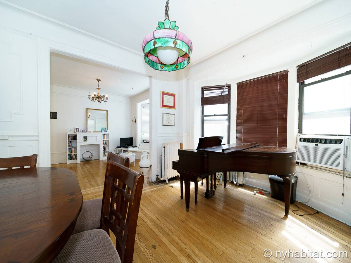 Enjoy your stay in this three-bedroom, one-bathroom apartment share in Washington Heights in Manhattan, New York. It is located on the corner of West 157th Street and Broadway Avenue, on the 3rd floor (equivalent to the 2nd floor in Europe) of an 8-story building. There is a security system, laundry amenities in the building, and an elevator.