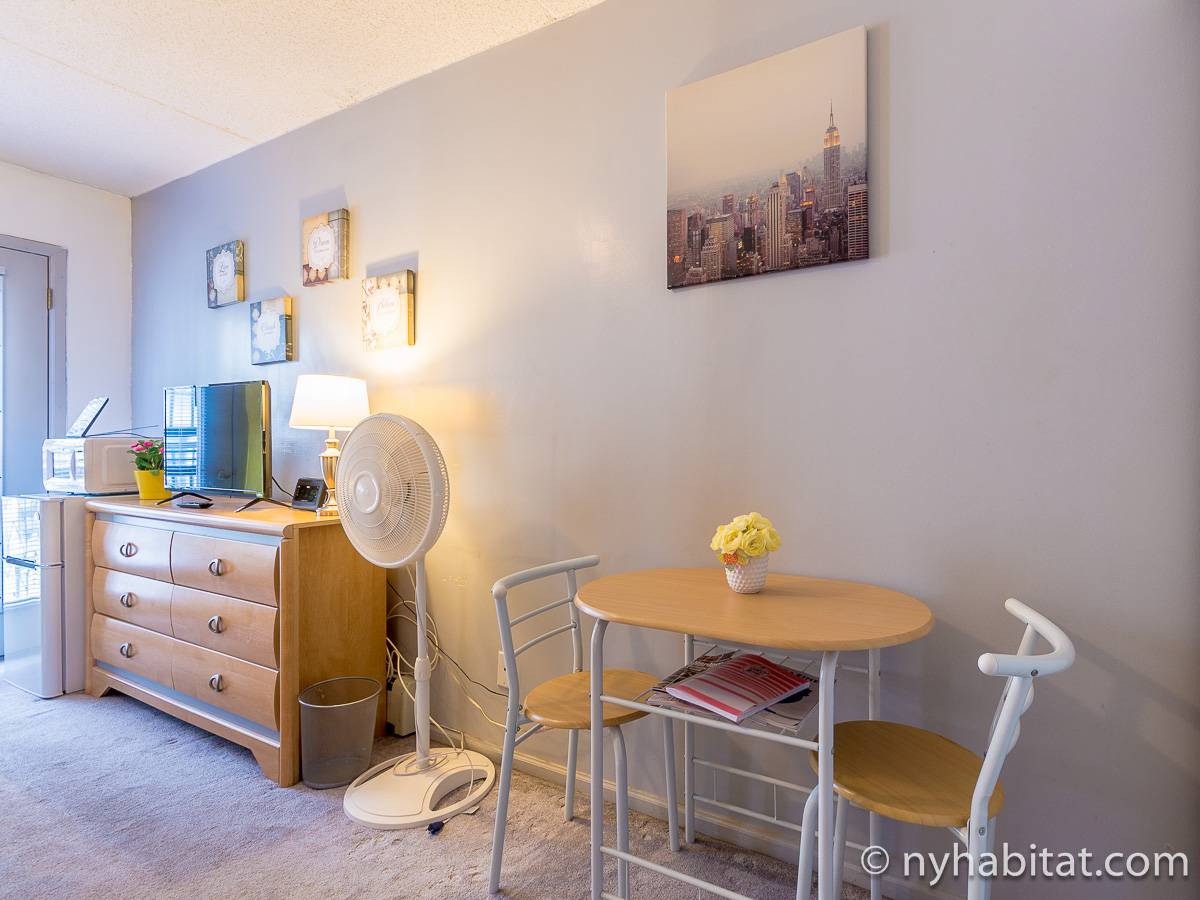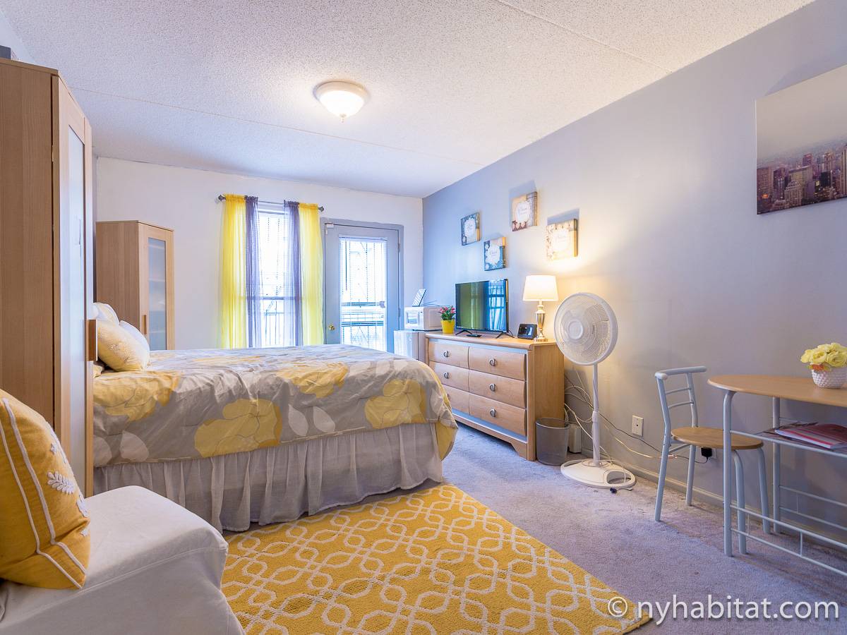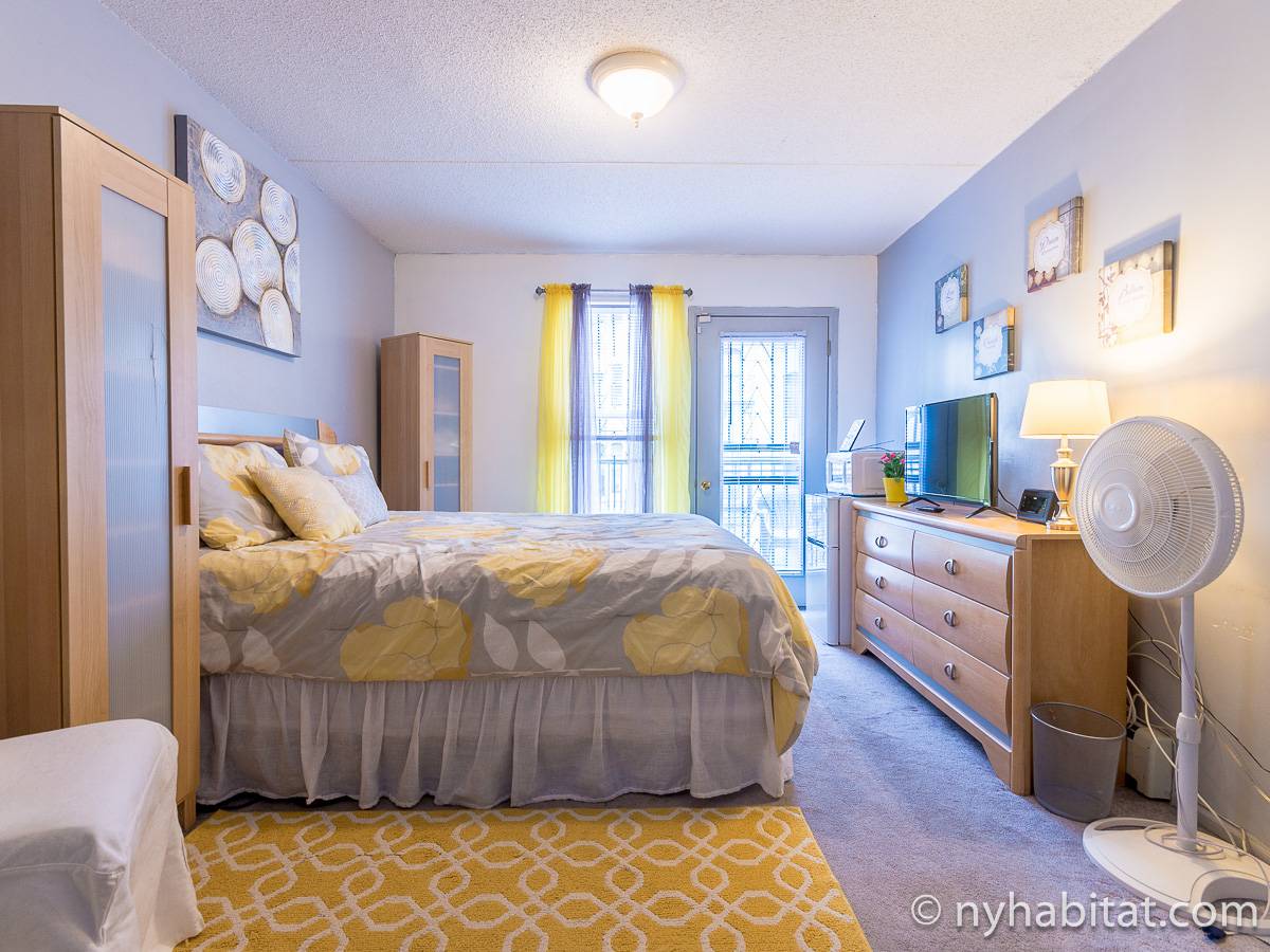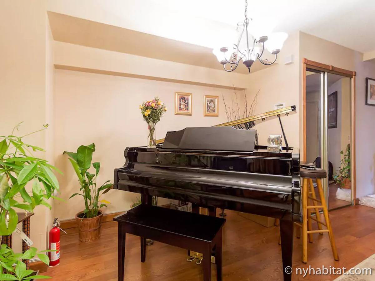 At the corner of Adam Clayton Powell Jr Blvd & W 117th Street, in the New York City borough of Manhattan, you will find this fully furnished bedroom for rent with private bathroom. On the parlor level of a duplex apartment, this room for rent is found in a townhouse on a tree-lined street of Harlem.