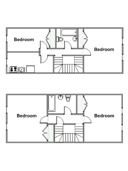 This four-bedroom, two-bathroom, duplex apartment is available to rent on Saint Felix Street and Dekalb Avenue in Fort Greene, New York! You will find this apartment on the 1st and 2nd floor (Ground floor and 1st floor European equivalent).