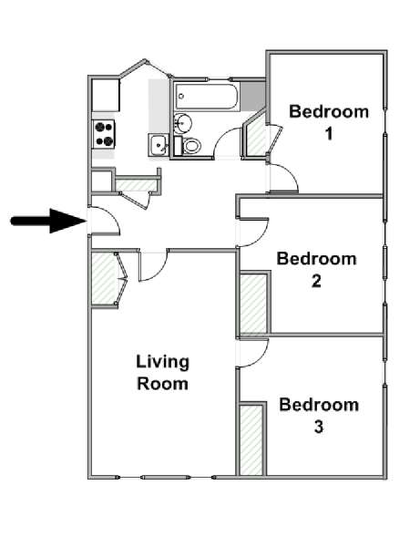 This is a 3-bedroom, 1-bathroom apartment share (one bedroom on offer). It is located on the corner of West 105th Street and Broadway, in the area of Manhattan Valley. In this shared apartment you will have a private bedroom; the living room, the bathroom and kitchen are to be used as common shared spaces.