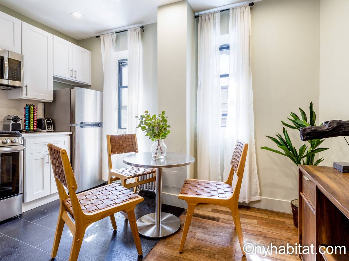 Located on the corner of Broadway and La Salle Street, this is a 654-square-foot (around 61 m2) three-bedroom furnished apartment. It sits on the third floor (equivalent to the second floor in Europe) of a West Harlem no-elevator building in Manhattan, New York.