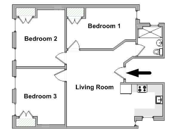 This three-bedroom, one-bathroom apartment building is available on Columbus Avenue and 106th Street on the Upper West Side, New York! This apartment includes a washer and dryer, a convenience to find in the Big Apple! The apartment size is 755 square feet (70 square meters), and can be found on the 5th floor (4th floor European equivalent).