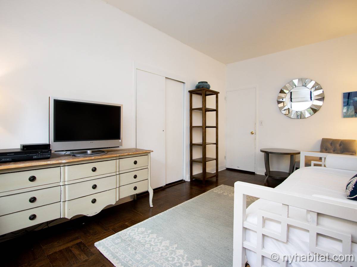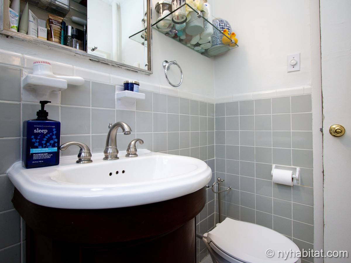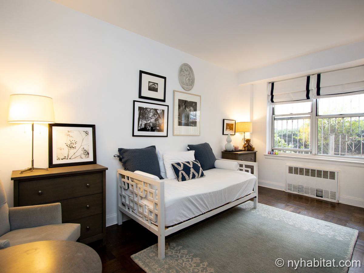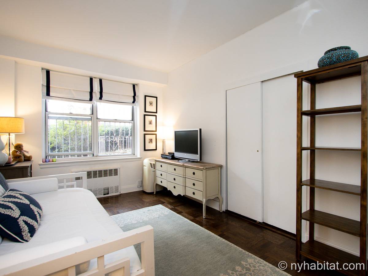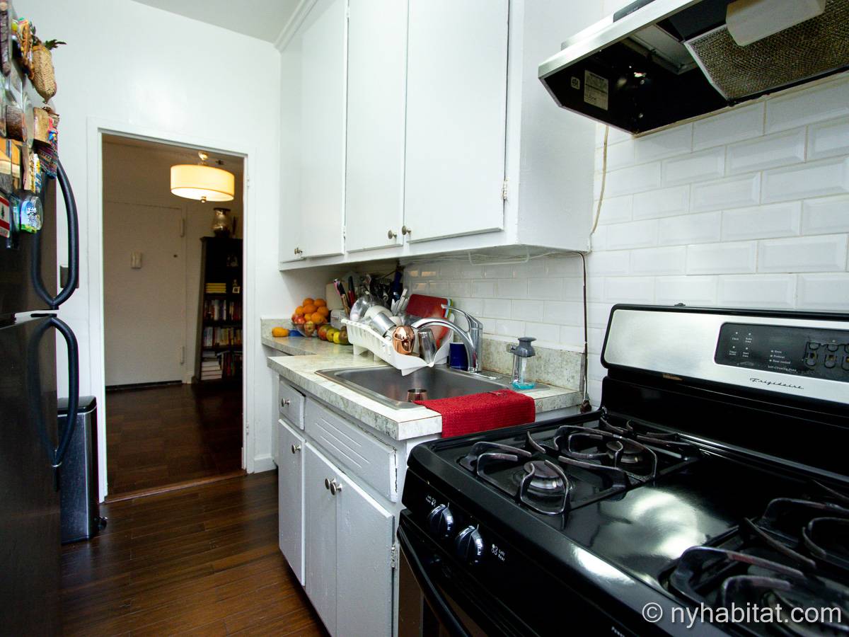 This two-bedroom, one-bathroom apartment share is located in Washington Heights, New York City. On the corner of Overlook Terrace and West 187th Street, you will notice the highrise building. Situated on the first floor (same as the ground floor in Europe) this Manhattan building offers amenities including a doorman, gym, laundry room, and garden.