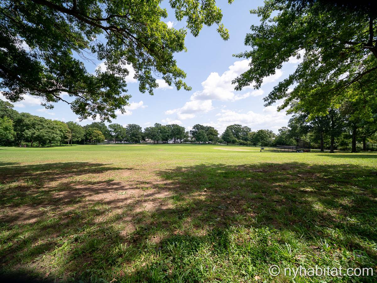Located at the intersection of 147th Street and 119th Avenue in Queens, New York, this 3-bedroom, 2-bathroom apartment share has one bedroom for rent. This roommate share spans 930 square-feet (around 85 m2) and is situated on the first floor (equivalent to the ground floor in Europe) of a two-story townhouse with a security system. Please note that there is no elevator.