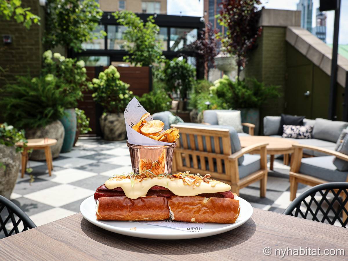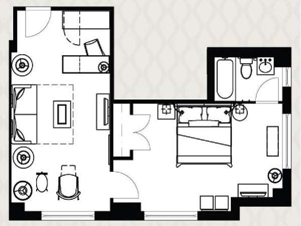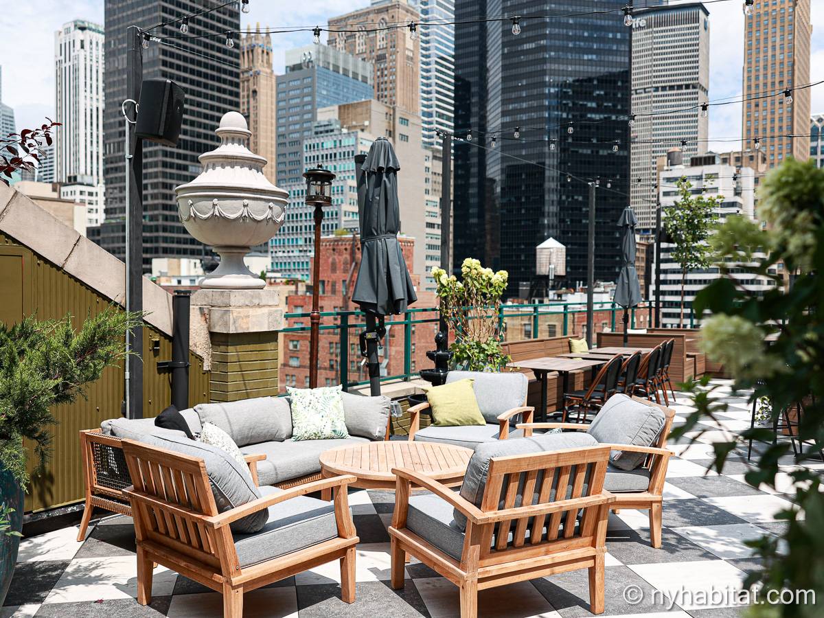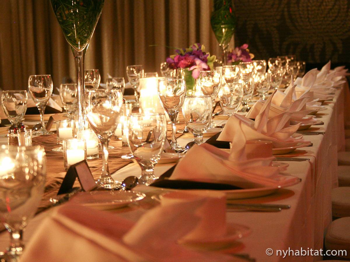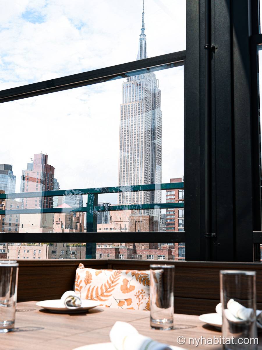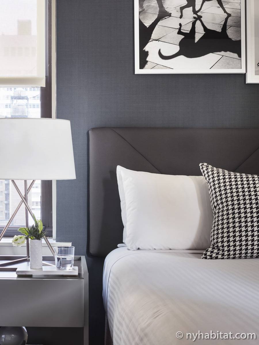 This fully furnished 1 bedroom suite is located in the Affinia Hotel, a mid-rise, elevator building in the neighborhood of Murray Hill in Midtown East, Manhattan in New York. This building has a 24-hour staffed front desk for security and offers many different amenities and services. Extra items such as dishes, cutlery and chairs can be made easily available 24 hours a day by calling guest services and making a request.
