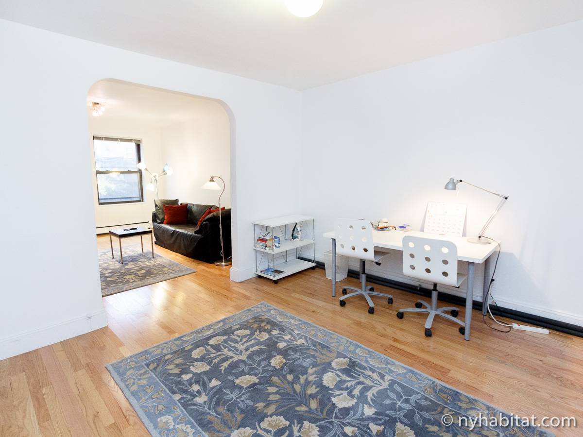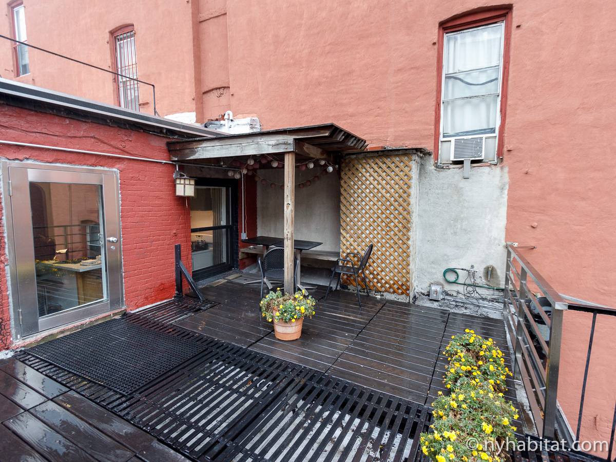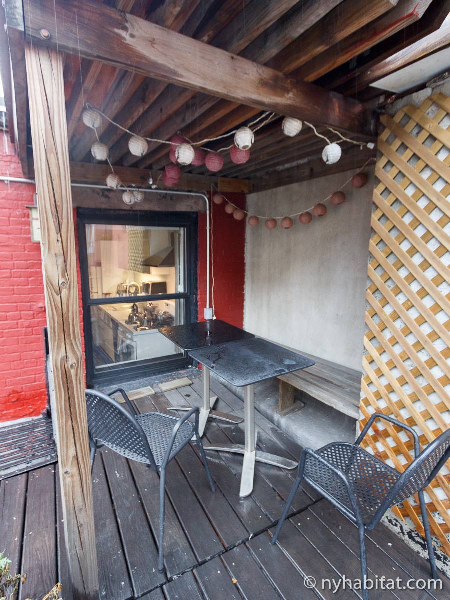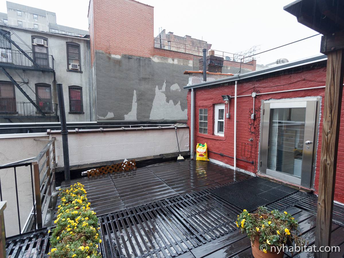 Let the dream of staying in New York City unravel, as you stay in this furnished one bedroom apartment, located right in the center of the Lower East Side of Manhattan. This spacious, yet warm hard wooden floor apartment, with an available private terrace, is located on the top of a 3-story walk-up building (equivalent to the European 2-story). The building includes a buzzer/intercom at its entrance, providing security for its tenants.
