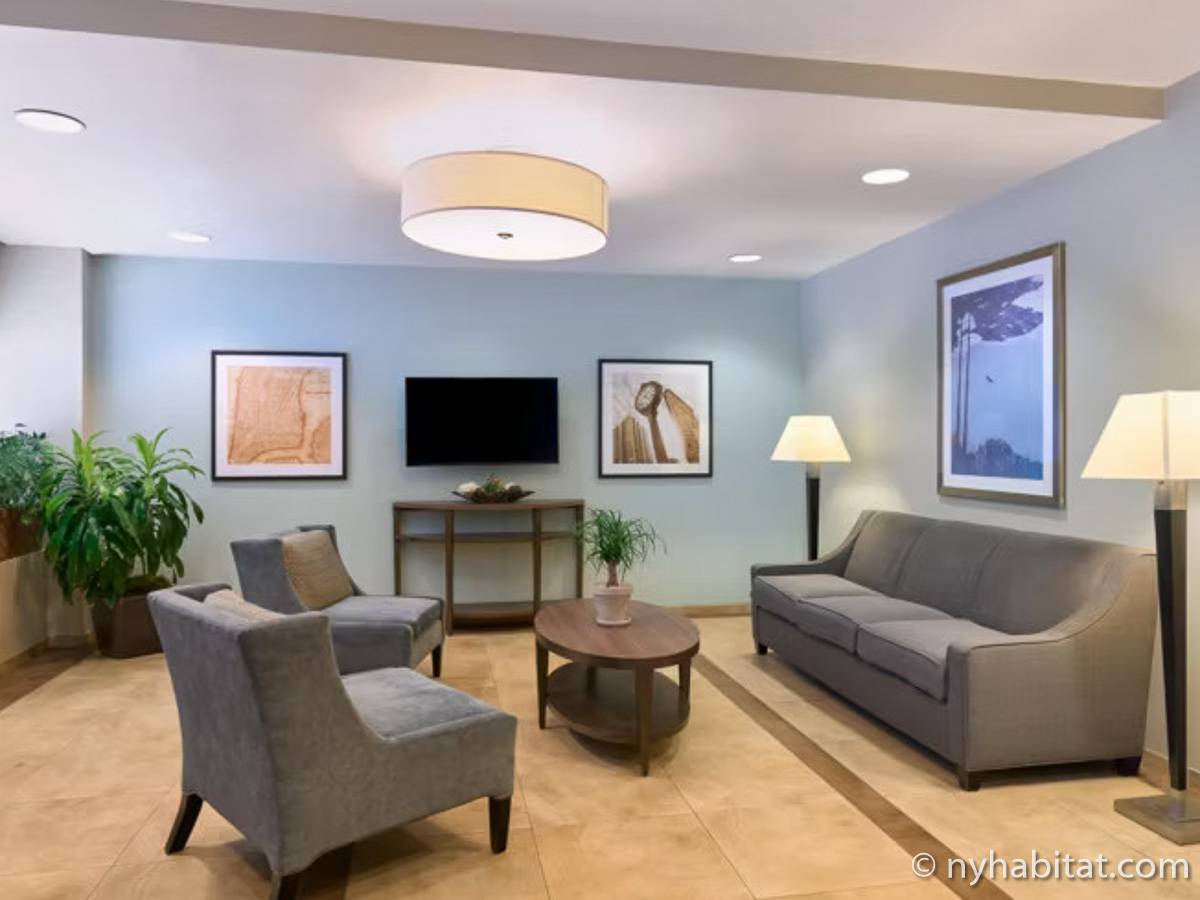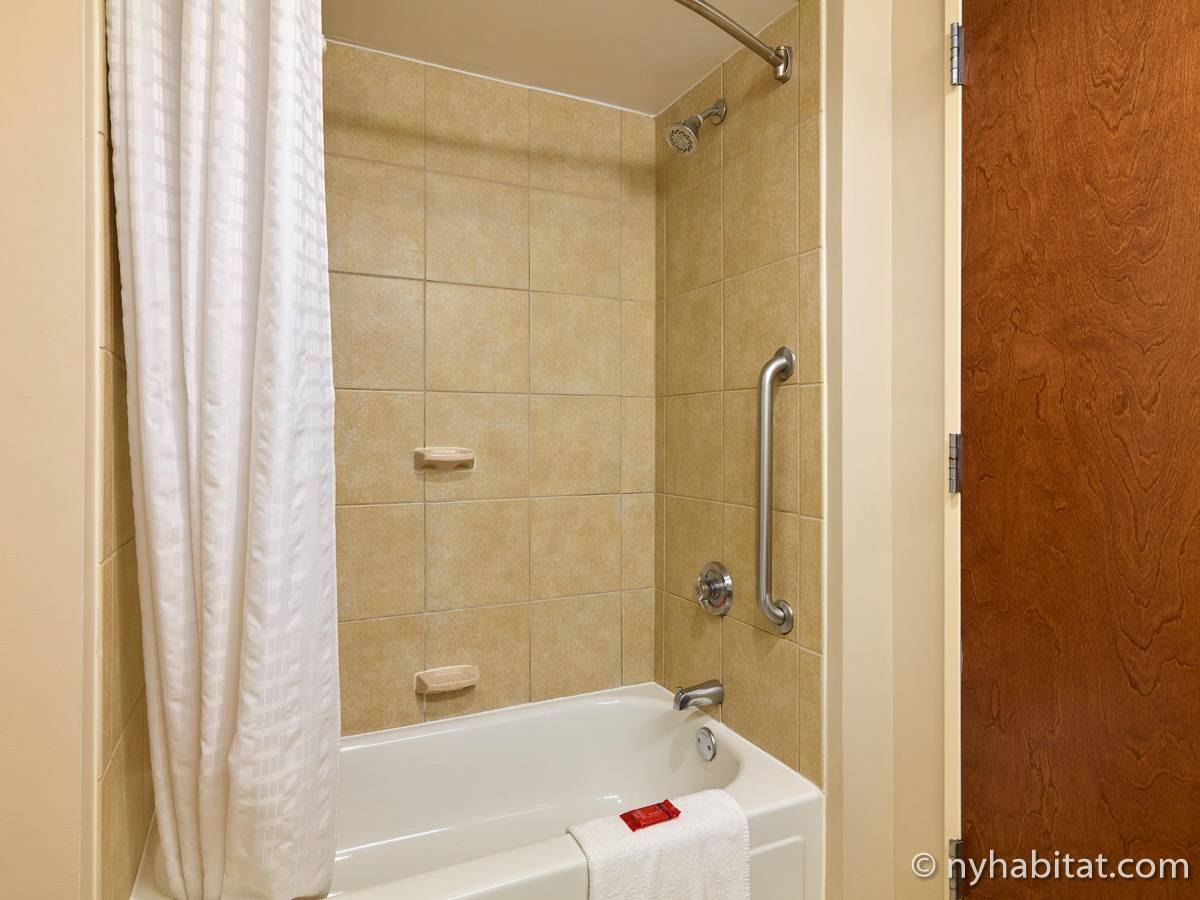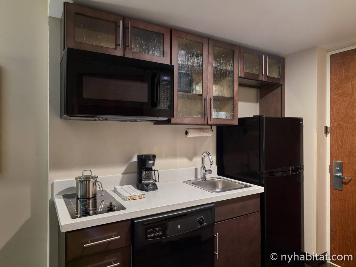 The suites are located in an apartment hotel building in the heart of Midtown West, near many Manhattan attractions, like the Broadway Theaters, Carnegie Hall, Times Square, and much more. The subway station is a few blocks away.