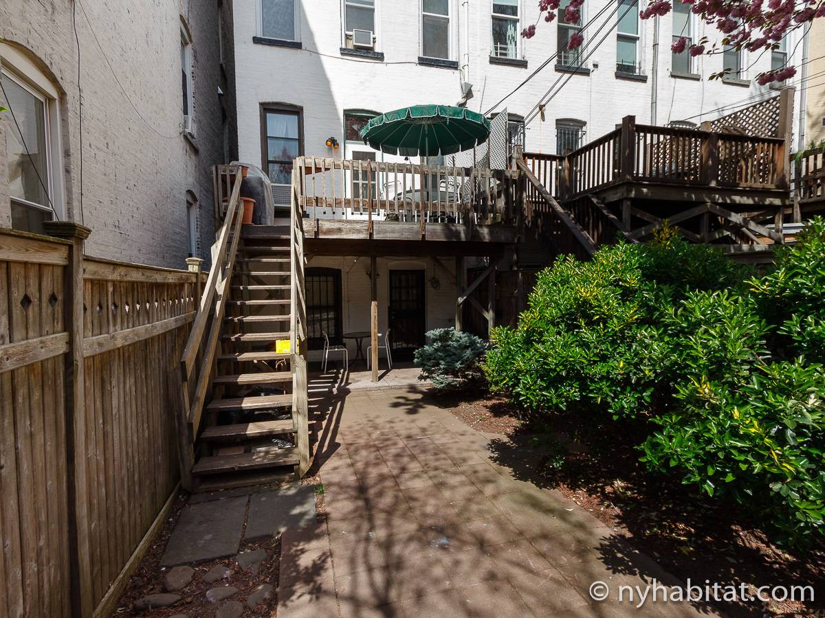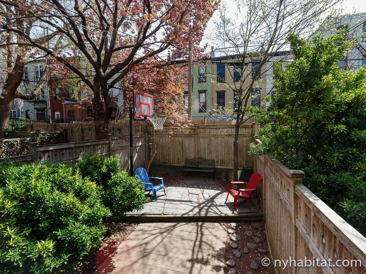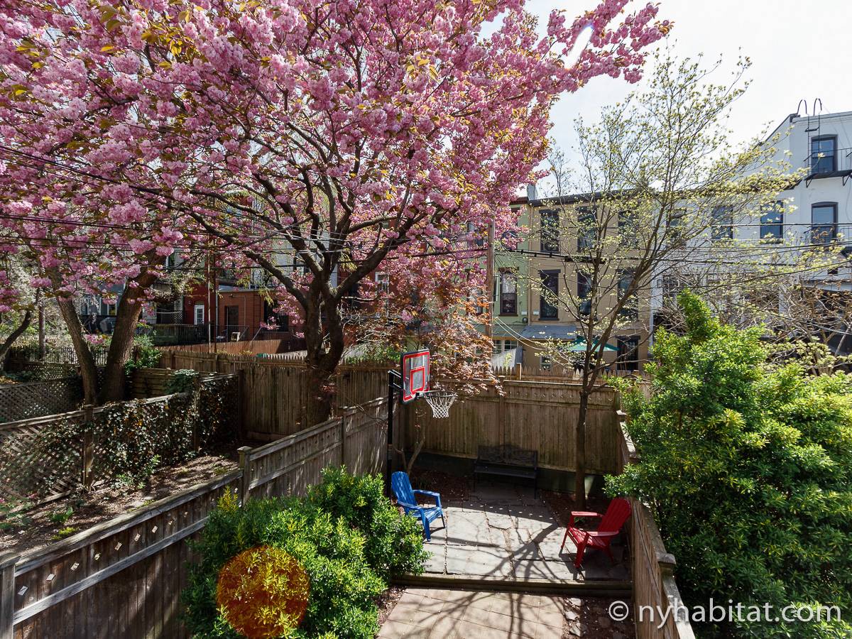 Enjoy the family friendly and aesthetically pleasing Brooklyn neighborhood of Park Slope from this fully furnished one bedroom apartment rental on 7th Avenue and 7th Street. This apartment is situated on the ground floor of an 18th century townhouse with a fenced-in backyard garden, terrace, and in-home laundry.