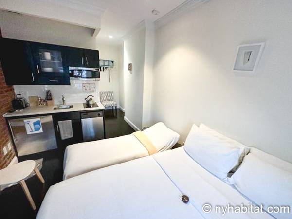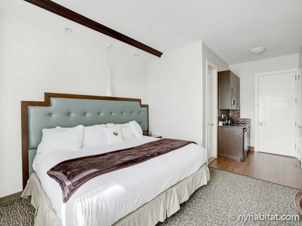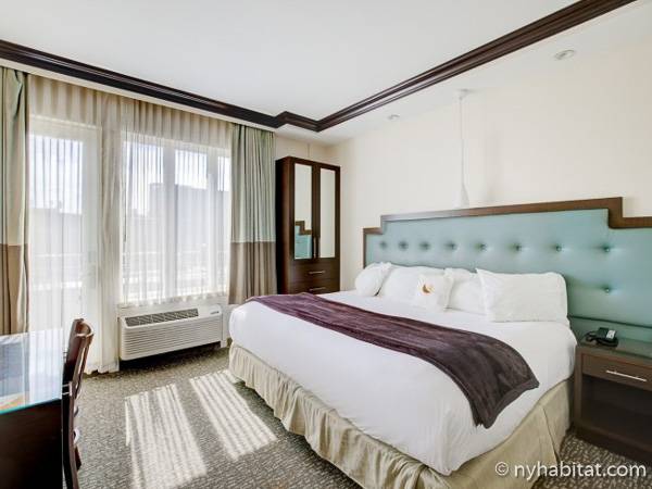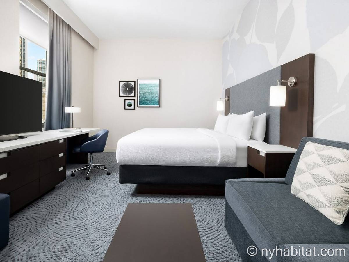 Step inside this accommodation to find a space that is filled with natural light. The two large windows also provide city views to enjoy during your stay. Wake up in the king-size bedand make yourself a cup of coffee in the open kitchen area where there is a coffee maker and also a refrigerator, microwave, and sink. There is air conditioning, an armoire for clothing storage, a TV, and a desk and chair for sitting. The bathroom has a tub and showerhead.