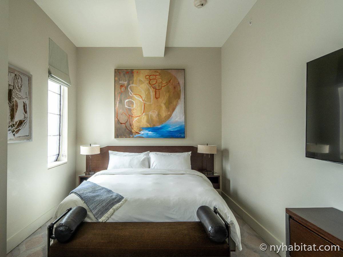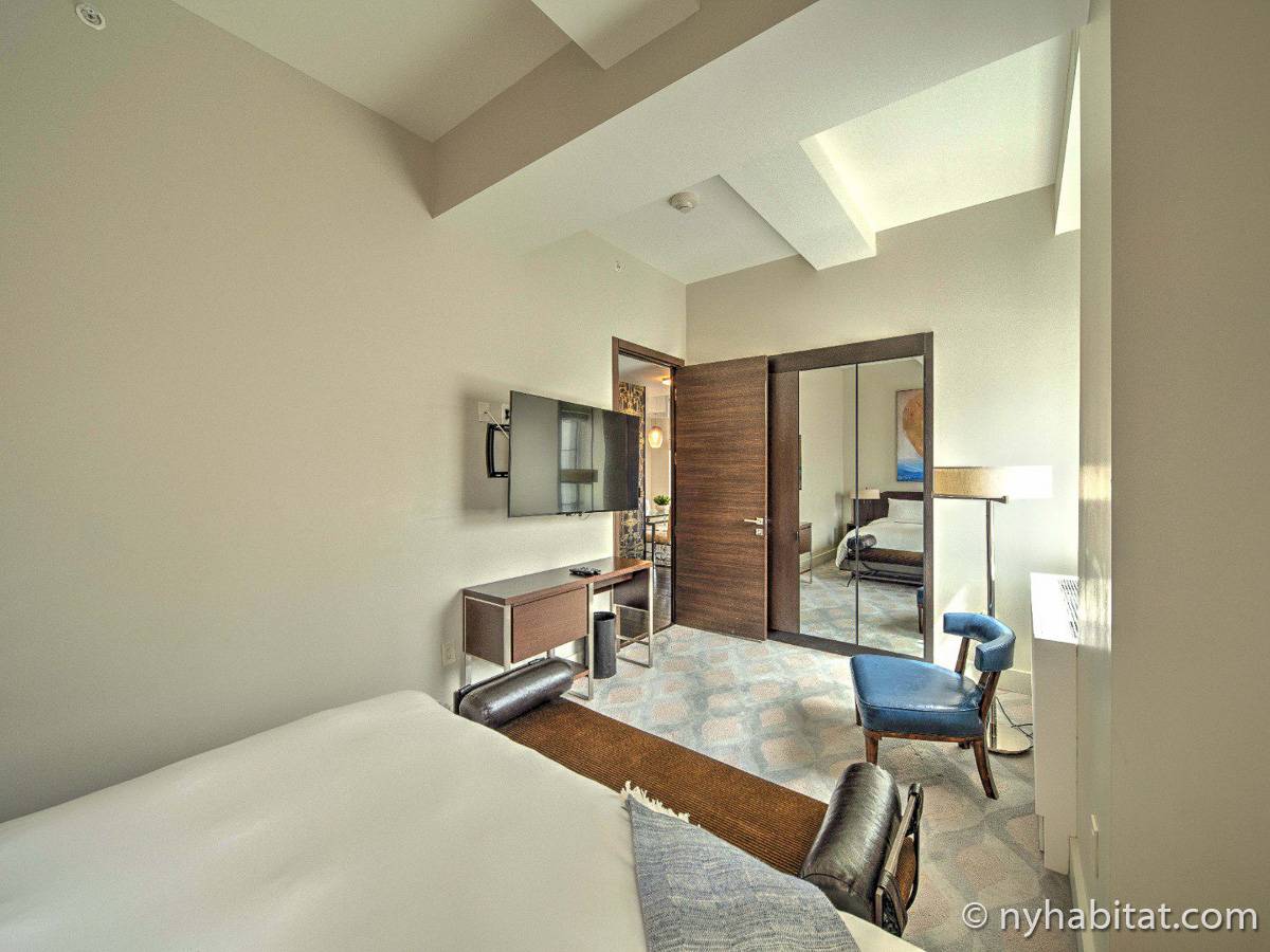 This is a furnished apartment in Murray Hill. It is a 1-bedroom, 1-bathroom apartment in a high-rise doorman building. This apartment is a 425 square-foot (around 39 m2) space in a building that has an elevator, a gym, a pool, and a laundry room. It sits near the crossing of Park Avenue and East 32nd Street in Manhattan, New York.