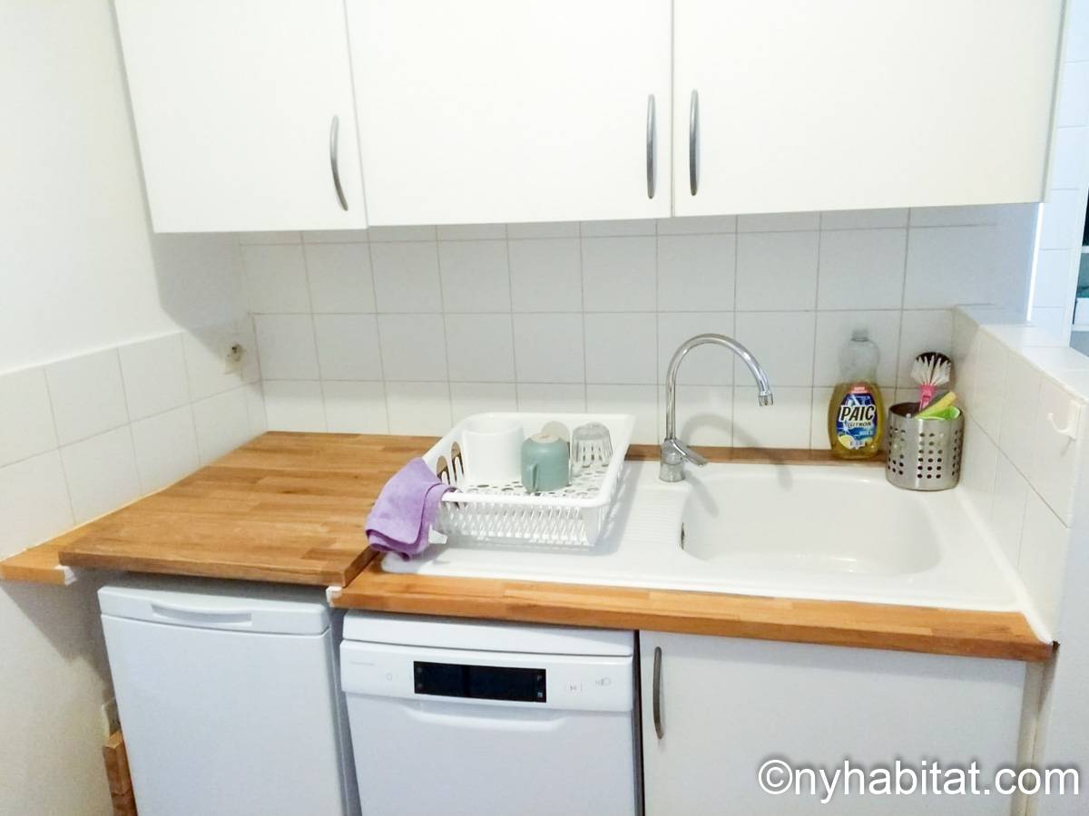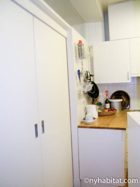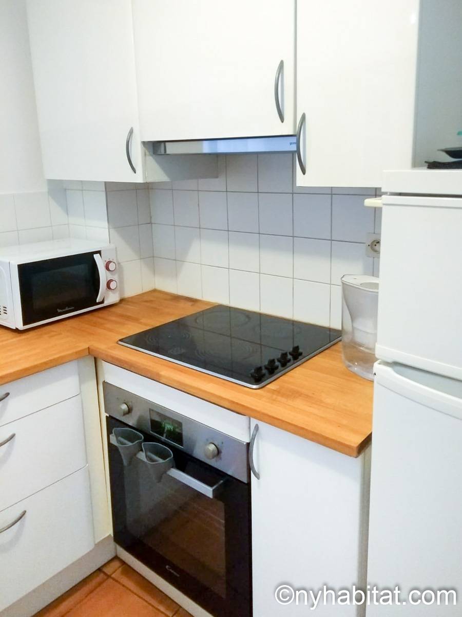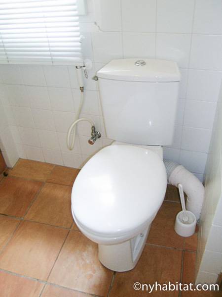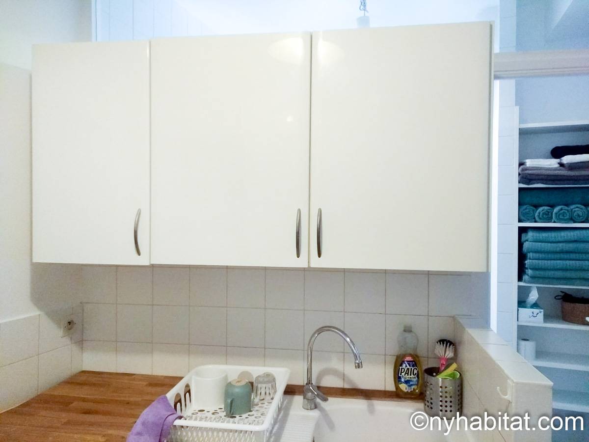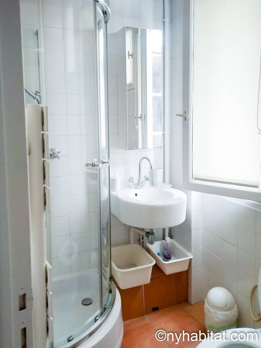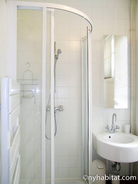 This 58m² (approx. 625 sq. ft.) furnished apartment is situated on the first floor (2nd in the USA) of a 19th century walk-up building. The main entrance gate is protected by a coded security system and opens into a hall with a second door protected by an intercom.