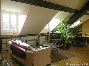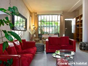 This modern 98m² (approx. 1,050 sq. ft.) three-bedroom duplex apartment is located on the fourth floor of an 18th century building renovated in 2006 ; it has an elevator. A coded security system and a part-time concierge protect the main entrance gate. This opens onto a nice courtyard with access to the building entrance, which is protected by a visio-intercom. The apartment has a teak floor and a Wifi Internet connection.