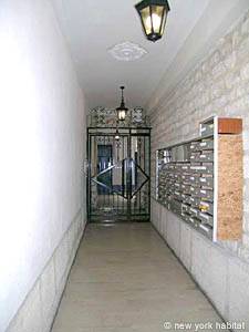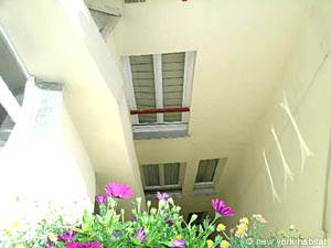 This studio rental invites you to discover Le Marais, one of Paris’ most well-known districts. Located on Rue Rambuteau situated between rue Beaubourg and rue du Temple, this charming abode sits on the sixth floor (considered 7th in U.S.) of a six-story 18th century building, complete with elevator and an intercom system.