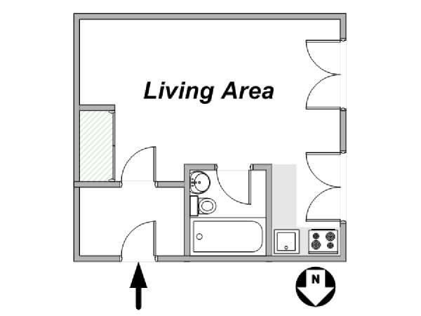 This studio apartment is located on the third floor of a 19th century walk up building.
