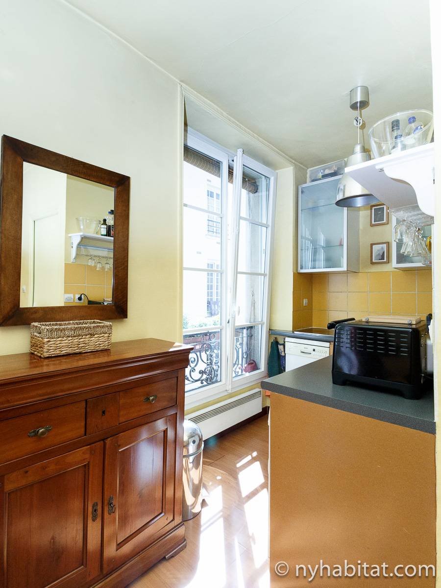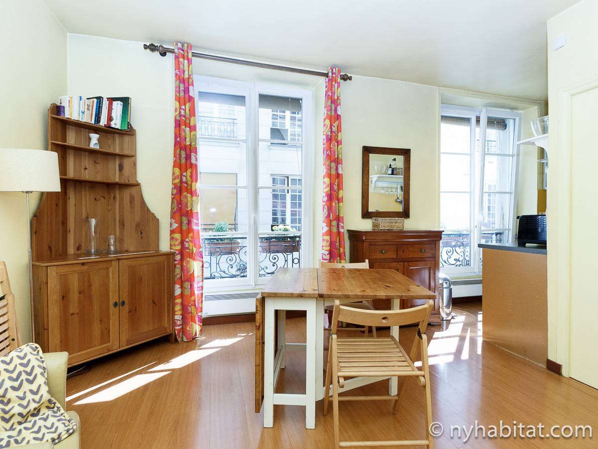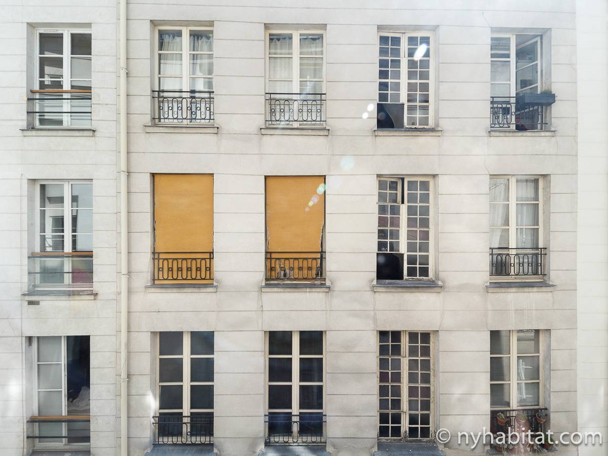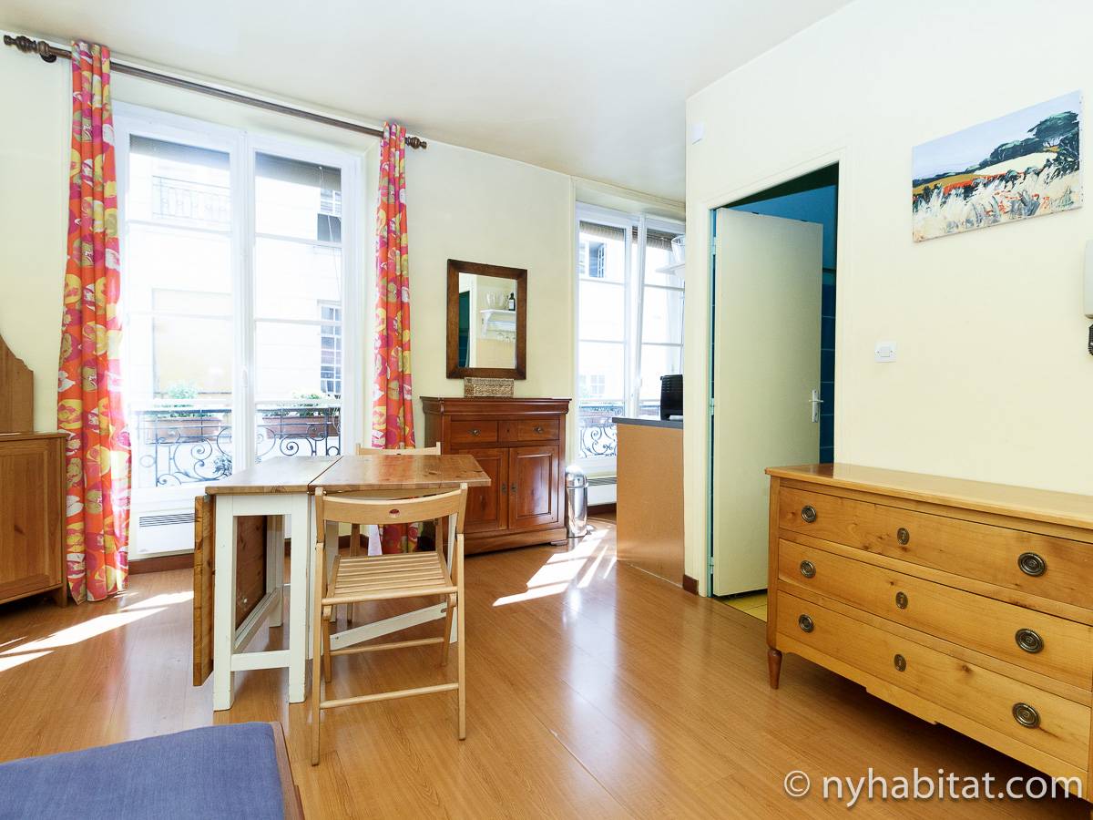 This furnished studio apartment is located on Place du Marché Sainte-Catherine between Rue de Jarente and Rue d'Ormesson.