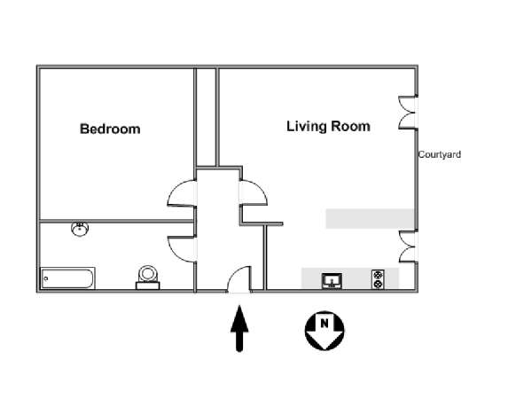 Throw down your suitcases and ease into Parisian life while living on Rue Boissy d'Anglas & Rue d'Anjou in this centrally located, fully furnished one bedroom apartment. The apartment is situated on the 6th floor (equivalent to the 7th North American floor) of a nineteenth century building in the bustling 8th arrondissement. With sunlight exposure from the west, and a façade that faces the courtyard for optimal street noise isolation, this one bedroom apartment has the architectural charm common in nineteenth century construction.
