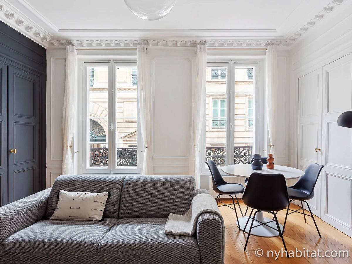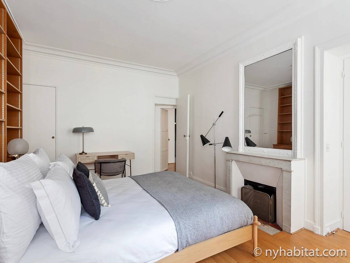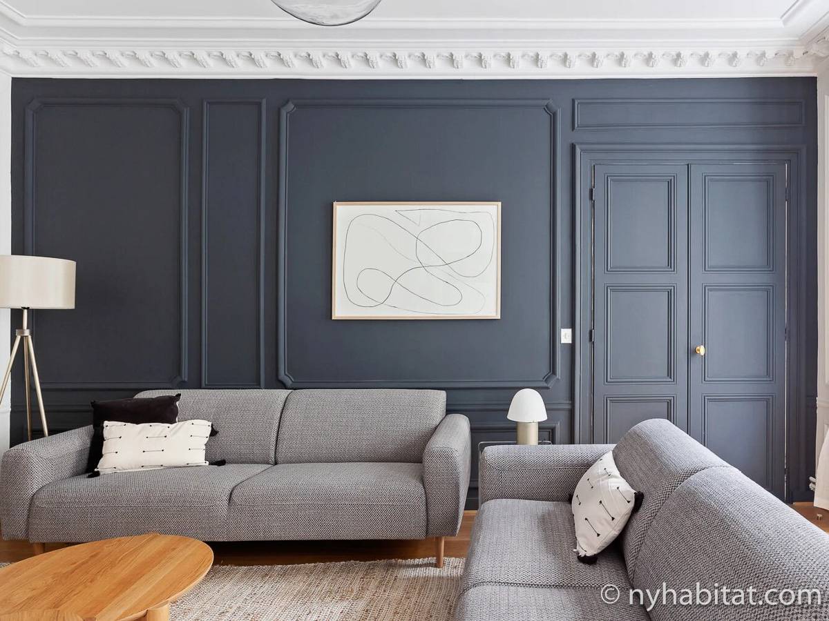 In Paris’s 7th Arrondissement, in Invalides, there is a street flanked by the Basilique Sainte-Clotilde and the Square Samuel Rousseau, a street which runs just 240 meters (around 787 feet) from end to end—it is la Rue Casimir Périer. Here, above street-level on the 1st floor (equivalent to the 2nd floor in the USA), stretch out in this 3-bedroom, 2.5-bathroom furnished apartment. This 104 square meter (around 1120 square feet) space sits near the corner of Rue Casimir and Rue de Grenelle. This apartment has a washing machine and a dryer.