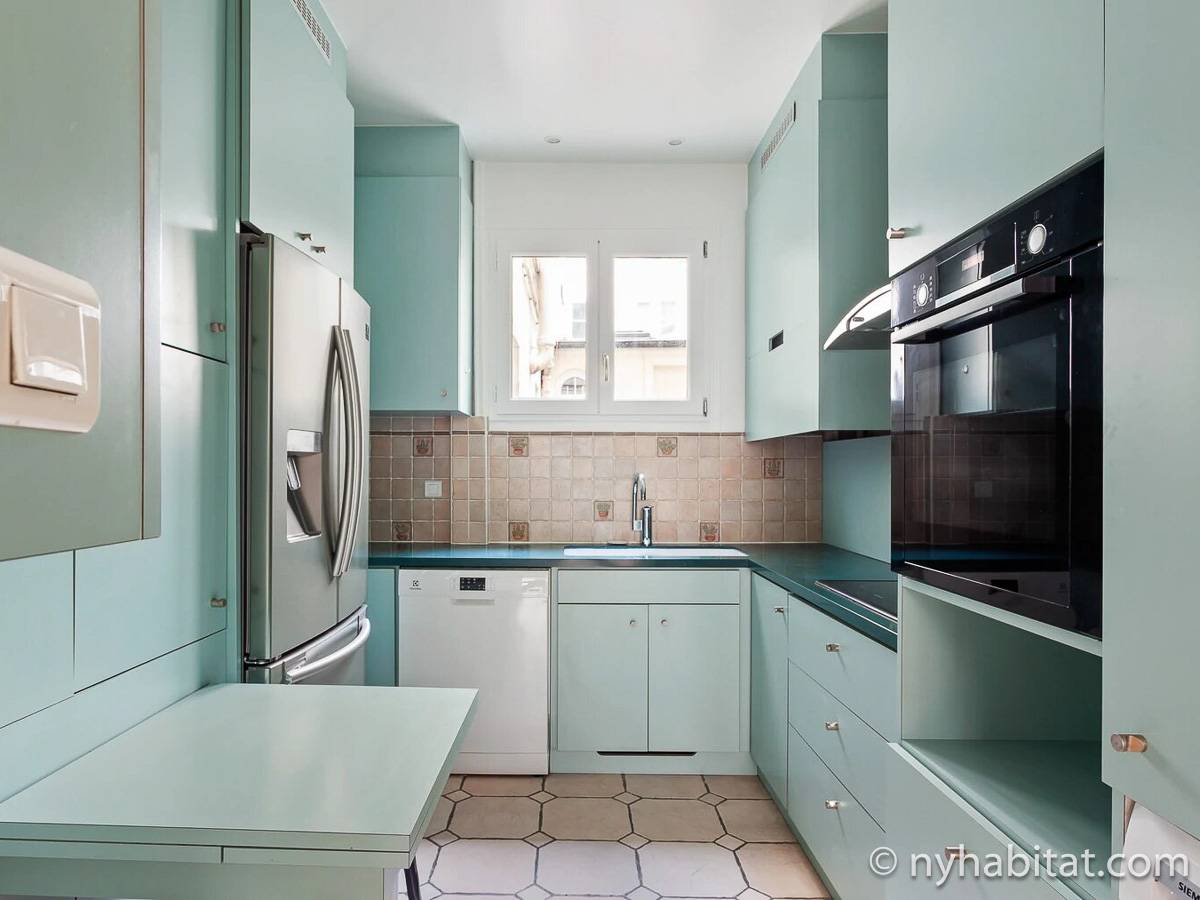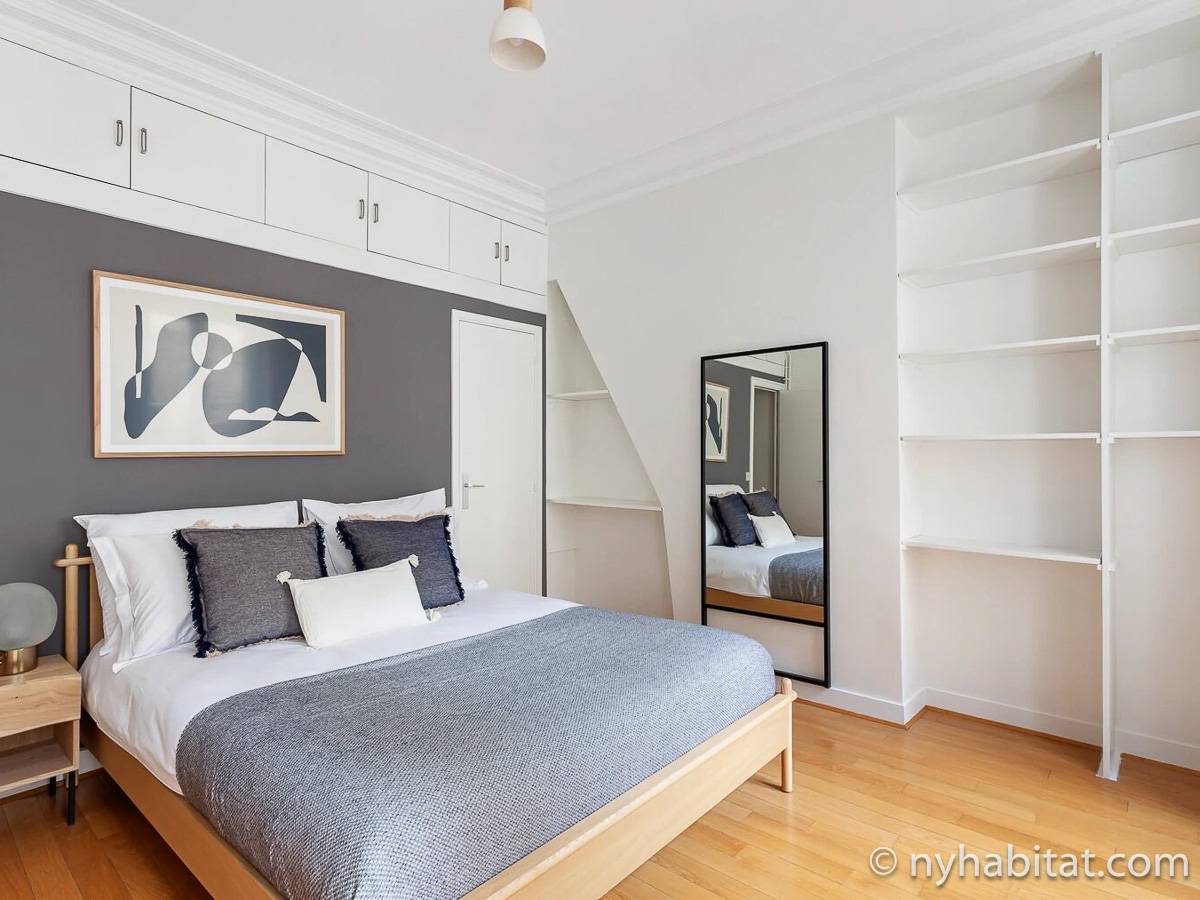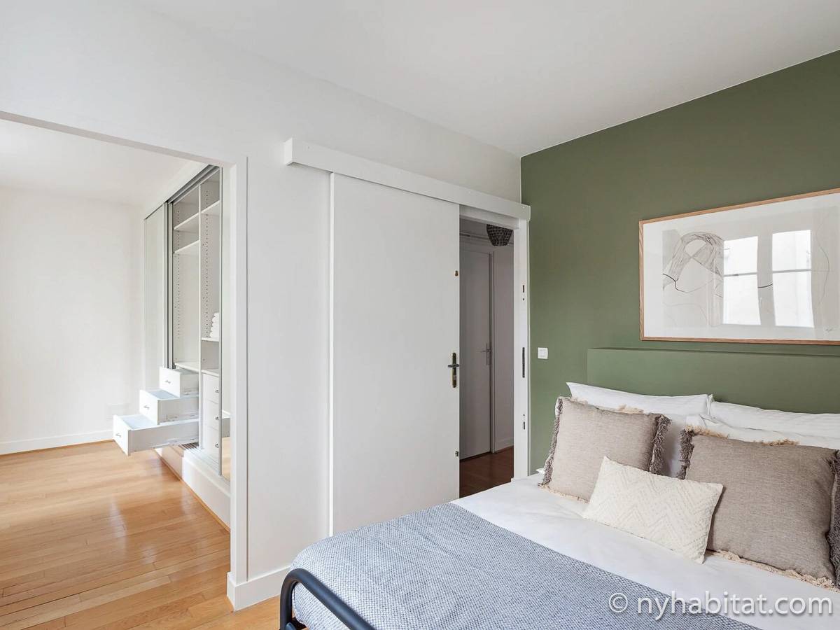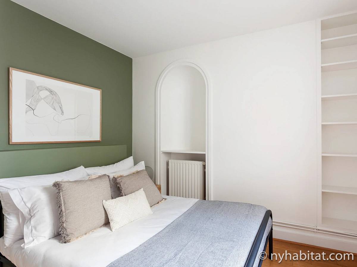 In Paris’s 7th Arrondissement, in Invalides, there is a street flanked by the Basilique Sainte-Clotilde and the Square Samuel Rousseau, a street which runs just 240 meters (around 787 feet) from end to end—it is la Rue Casimir Périer. Here, above street-level on the 1st floor (equivalent to the 2nd floor in the USA), stretch out in this 3-bedroom, 2.5-bathroom furnished apartment. This 104 square meter (around 1120 square feet) space sits near the corner of Rue Casimir and Rue de Grenelle. This apartment has a washing machine and a dryer.