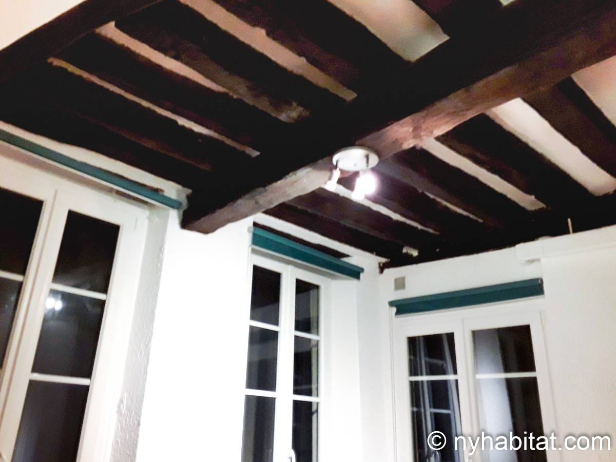 This apartment is on the 1st French floor of a 17th century building with a security code and an intercom. The building is located at Rue Saint Martin and rue du Cloitre Saint-Merri, in the 4th arrondissement of Paris.