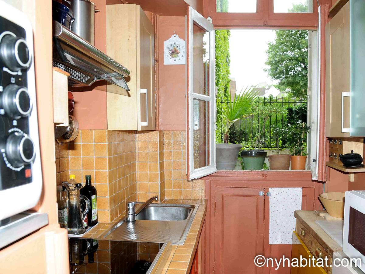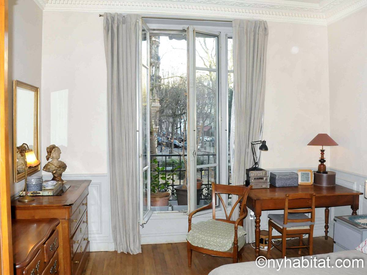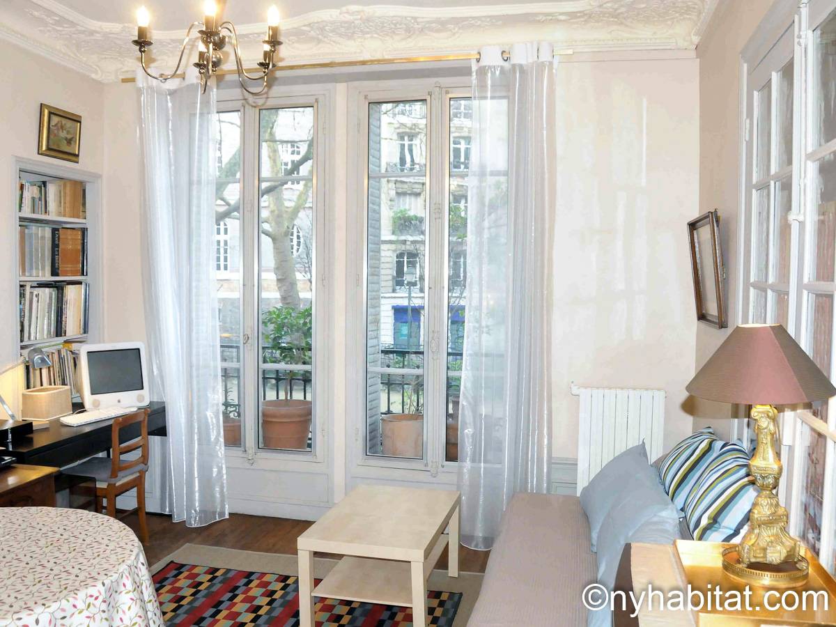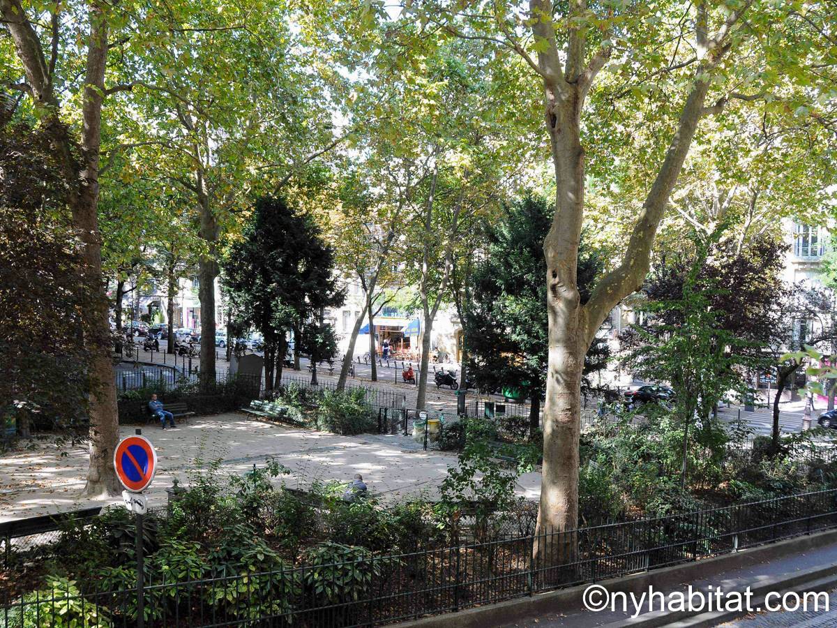 This one bedroom vacation rental is nestled among some of the only hills in in Paris, giving Montmartre an even more charming atmosphere. Sleeping two people comfortably, this apartment offers a more authentic Parisian experience, given that it faces a charming square, and features an original 19th century facade. Fully furnished with modern and antique furniture, this apartment features large windows that open onto balconettes and views onto either a private garden or the greenery of the square. The kitchen of this one bedroom vacation rental is fully equipped to make your stay all the more convenient with an oven, fridge/freezer, microwave, and other appliances. The bathroom features a full tub with separate WC and a washing machine to make your stay even easier. Overall, this apartment does an amazing job of evoking the Parisian lifestyle; facing a beautiful summery plaza, you’ll get a feeling for how real ‘Montmartois’ people live.
