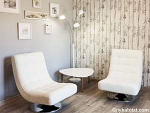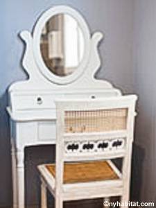 Bedroom 1: Victorine is furnished with a double size bed, and has west and south exposure. A French window gives access to a terrace, at the front of the house. There are teak deckchairs outside. The bathroom is actually in the bedroom. It has a washbasin with mirror, a stall shower and separate toilet.