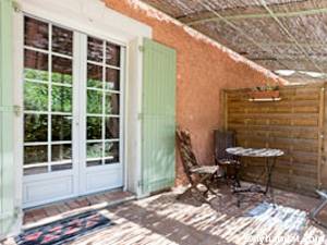 Bedroom 3: Josephine is furnished with two twin beds, and has west exposure. A French window gives access to a private and quiet terrace, at the back of the house. Outside is a dining table seating 4. The bathroom is separated from the bedroom but has no door. It has a washbasin with mirror, a bathtub / shower and separate toilet.