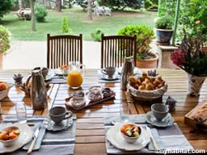 Breakfast is either served inside, or on the front terrace that is shade by a pergola.