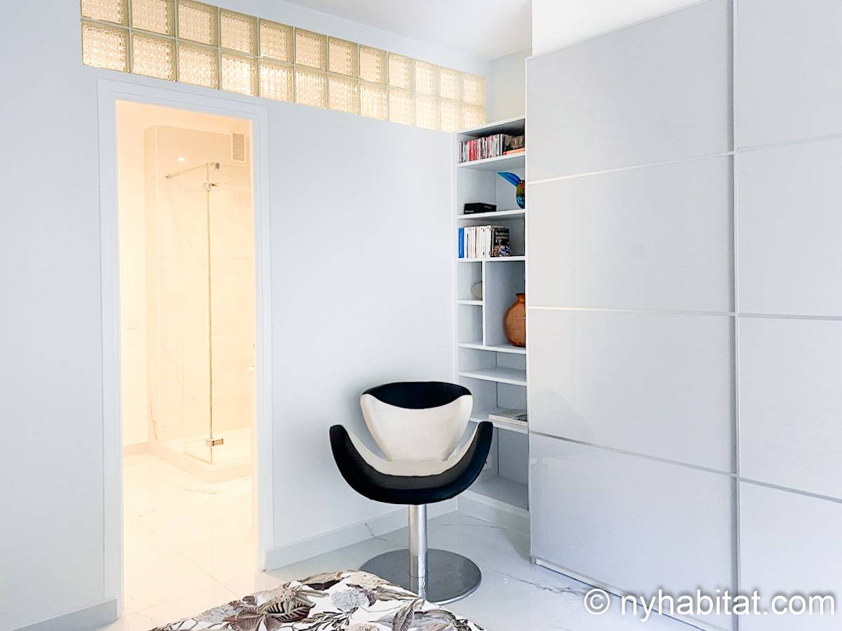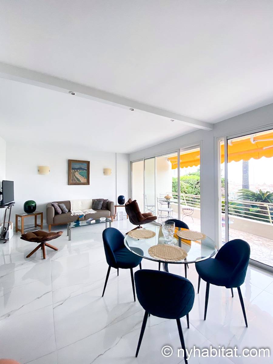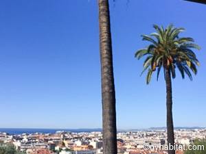 The glass doors of the living room and the terrace have southern exposure, allowing in plenty of light and offering a fantastic view on Nice and the sea. The windows in the bedroom have northern exposure with a view on gardens.