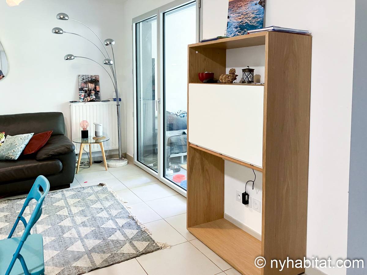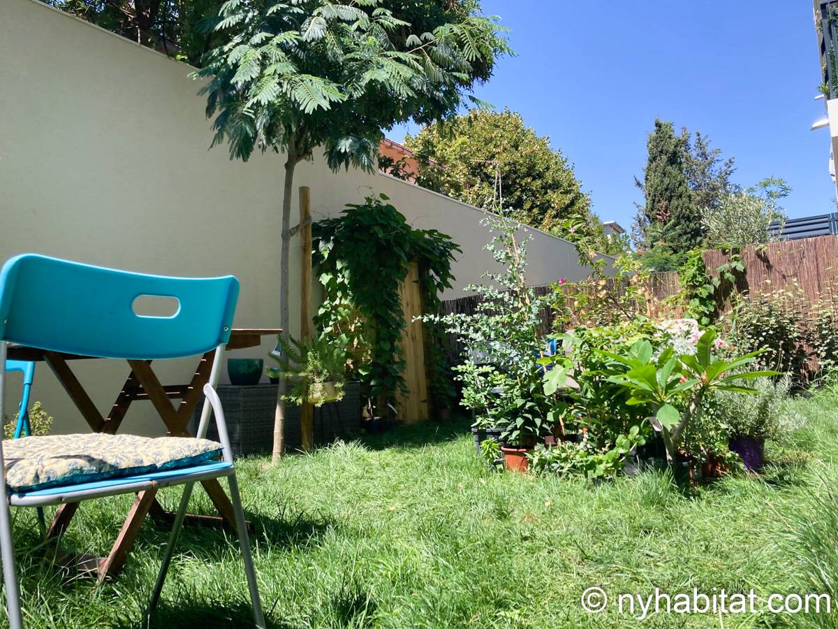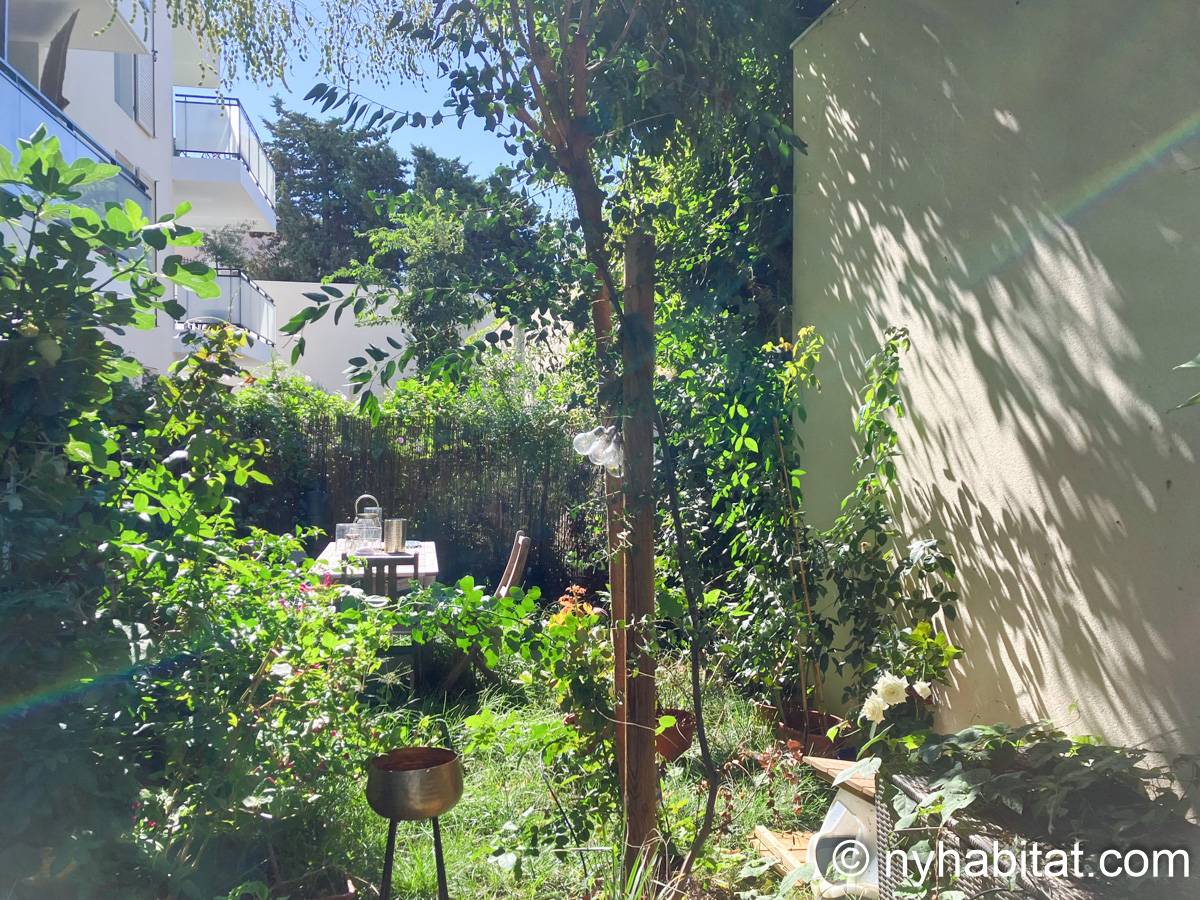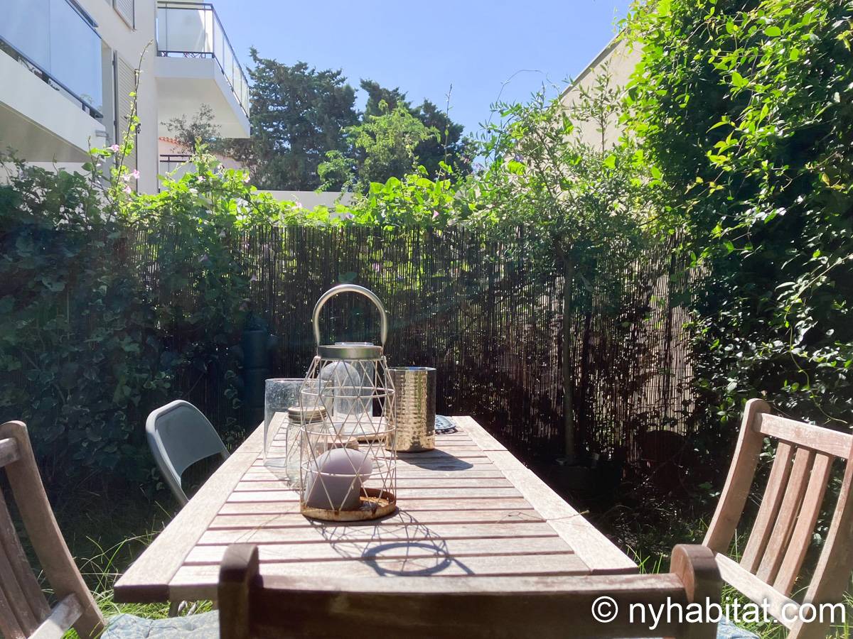 Welcome to Marseille. Here is a furnished 1-bedroom, 1-bathroom apartment in the South of France located on Avenue Clot Bey and Avenue de la Serane. It is a 42 m2 (450-square-foot) space and it has a washing machine and dryer as well as a garden and a terrace.