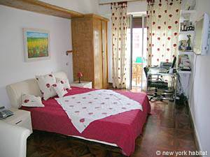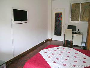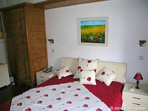 The bedroom has a French window opening onto the terrace as well. It is furnished with a double size bed and has two cupboards.