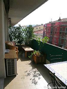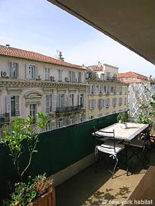 The apartment of approximately 65 sqm (including a 10 sqm terrace) is located on the 4th French floor (5th floor) of a postwar building with elevator, concierge and intercom system. The building is located Rue Hôtel des Postes, a few blocks from the Place Masséna and the Old Town, in the heart of Nice. This accommodation is available for weekly or monthly rentals, throughout the year. It sleeps 2 to 4 people.