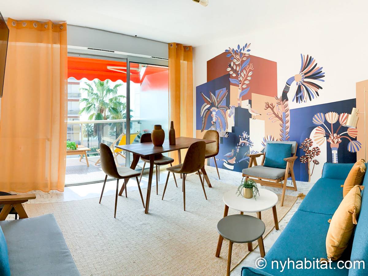 This two bedroom apartment is located on the 1st French Floor of a large residence with security system and elevator, and faces south/west. It can accommodate 4 people.