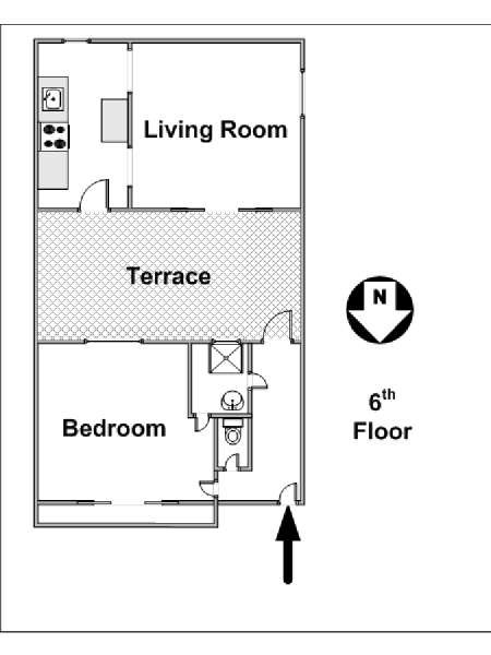 The apartment is located on the 6th floor of a building with elevator.