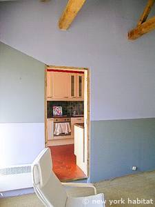 You access to the second space via the private terrace. It comprises a kitchen with dining area and a lounge with a large bay window overlooking the terrace.