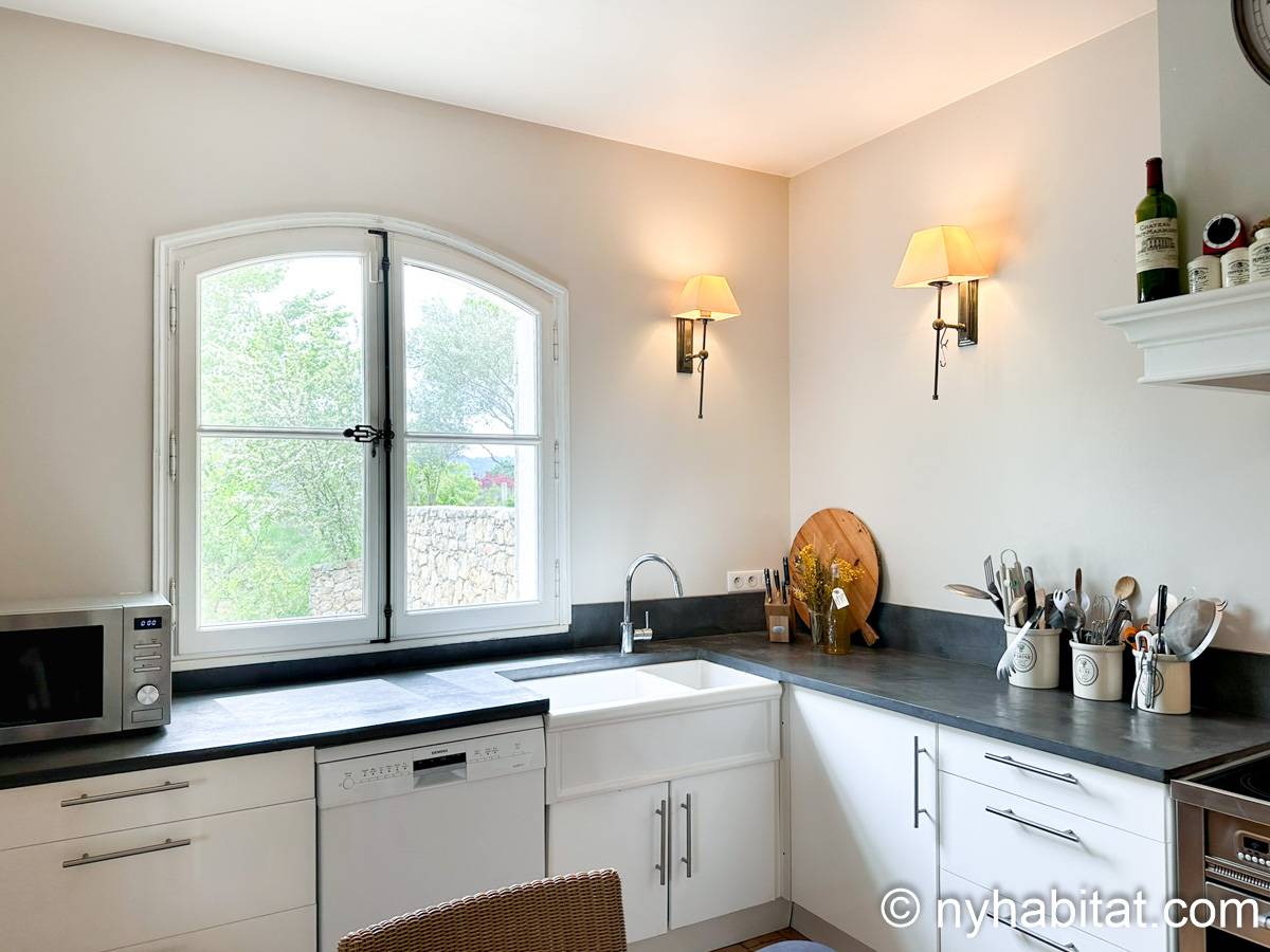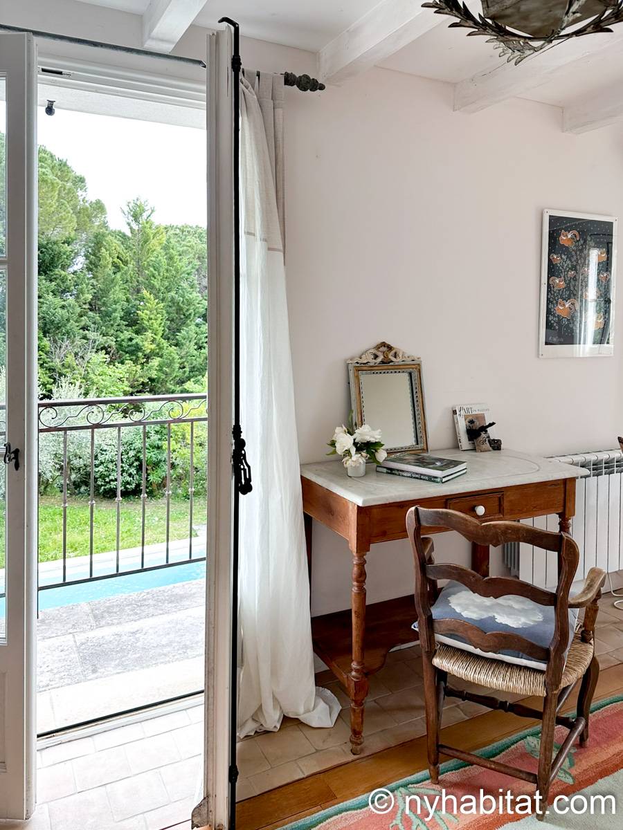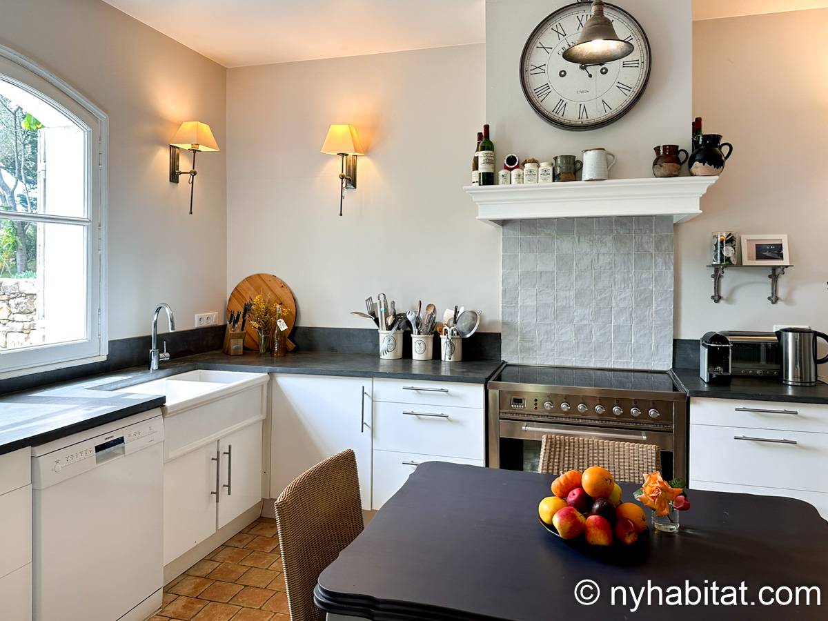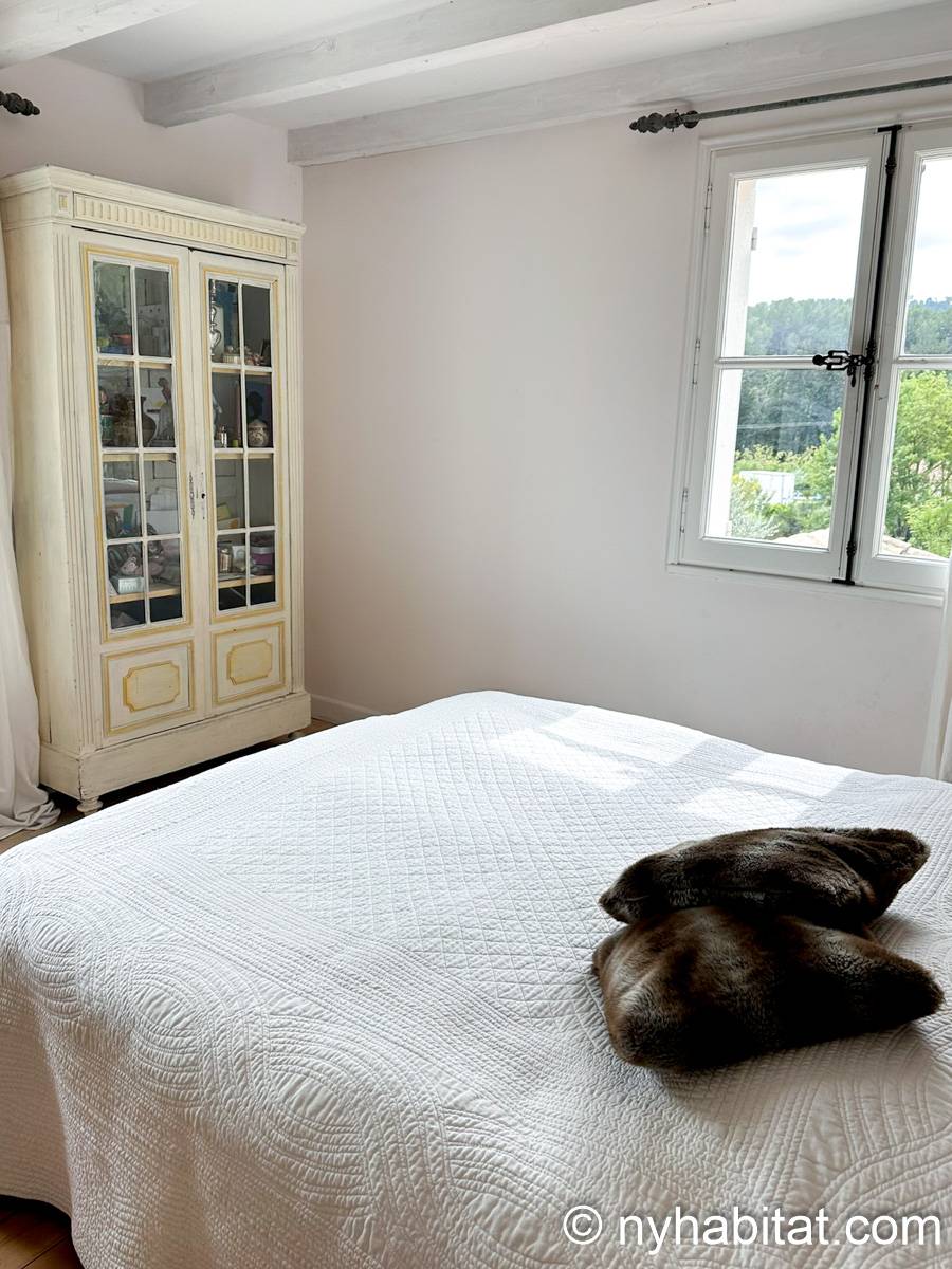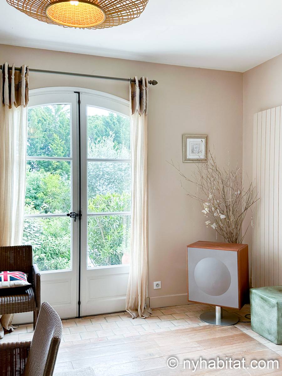 This four bedroom vacation rental offers views with southern and western exposure onto the terrace and garden, typically planted with olive and laurel trees. You will enjoy the two terraces, one of which is shaded, with high quality patio furniture to allow you to enjoy the lovely weather in the South of France. The villa is tastefully decorated (featuring local terracotta tiles and hardwood floors) and occupies three levels. On the garden level of this vacation rental accommodation, there is the large living area with an open kitchen, half bathroom and washing machine. Upstairs you have the 4 double bedrooms and two bathrooms (one with combination bathtub/shower, and one with shower only). On the top floor there is an attic living space to be used as a reading room or playroom, with a half bathroom.